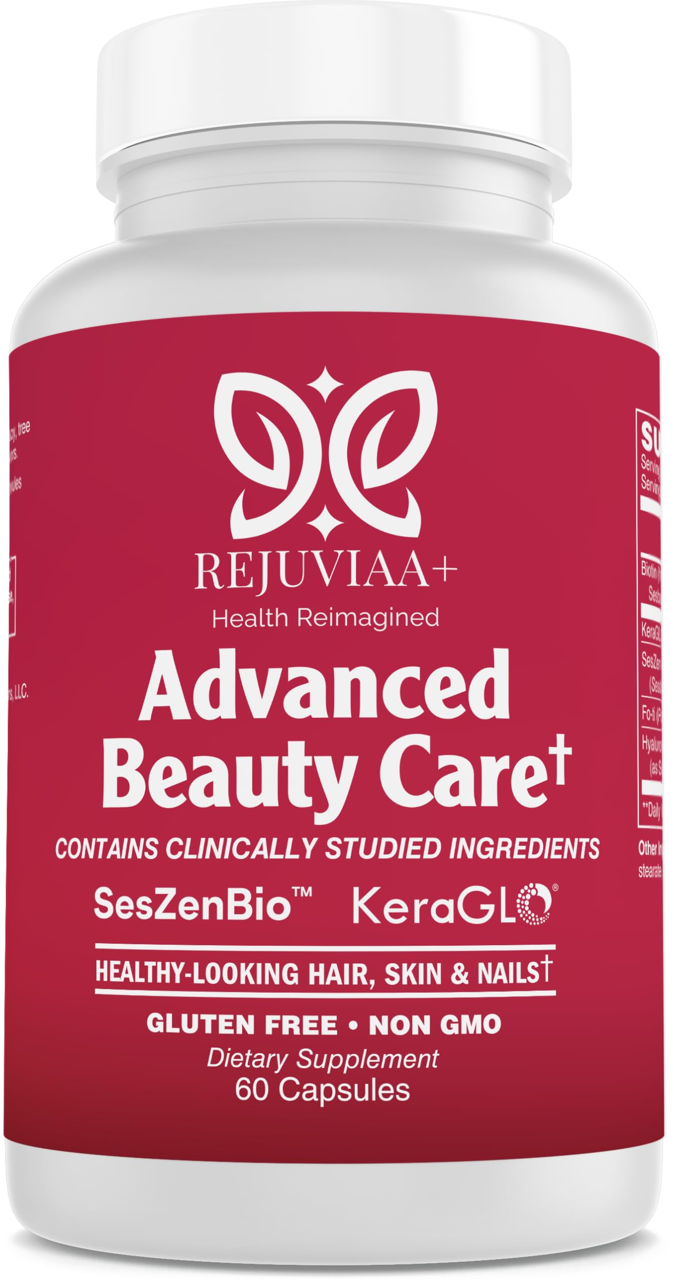 Rejuviaa+ Advanced Beauty Care Dietary Supplement with Sesbania Extract Hydrolyzed Keratin Fo-ti and Hyaluronic Acid 60 Capsules