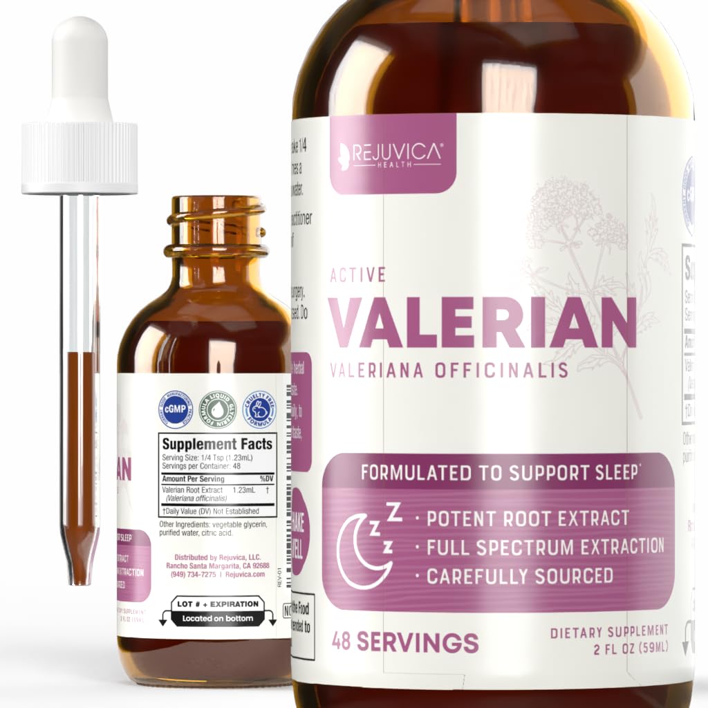 FITS MOST LIFESTYLES: Rejuvica's Valerian Extract is Non-GMO, Vegan, Made in a GMP Facility, Dairy Free, Nut Free, Gluten Wheat Free, Soy Corn Free, Sugar Free. Safe for ages one and up. ALCOHOL-FREE LIQUID FORMULA: Crafted with our advanced extraction process, our liquid formulas are brewed and macerated with an alcohol-free cold-extraction process. Most liquid formulas are made with a warm alcohol extraction that can burn the delicate ingredients and render them less effective. GREAT TASTING EASY TO USE! Our customers are amazed at how good this natural formula tastes, and it's as simple as squeezing a dropper on your tongue - no clumsy pills, no water necessary!. VALERIAN ROOT EXTRACT - We chose the highest quality valerian roots we could find, chock full of constituents and extracted it in a liquid remedy for sleep support!. MAY SUPPORT SLEEP - Active Valerian is the premier natural Valerian root supplement to help support sleep and get you back on the road to a healthier you!.