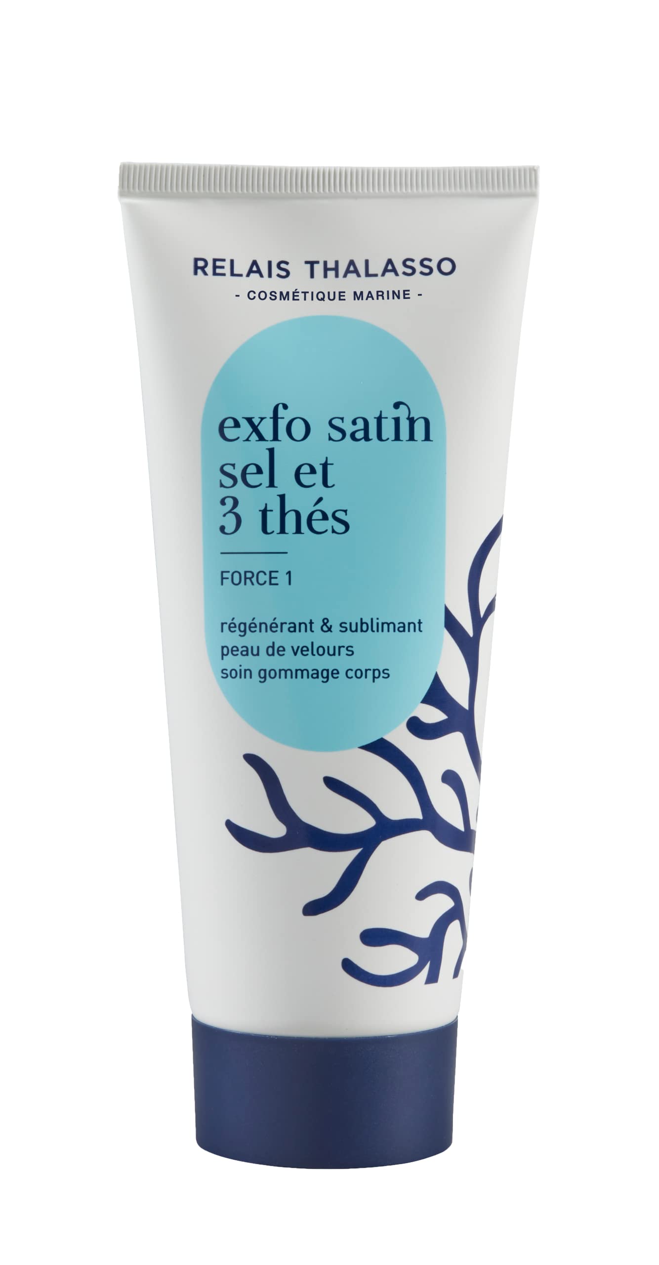 Relais Thalasso Cosmetique Body Scrub-Exfo Satin Salt and 3 Teas-Regenerating-Subliming-Tonifying-Velvet Skin-Strength-1-Black Tea+Green Tea+White Tea+Salt 200 ml Naturality: 98%
