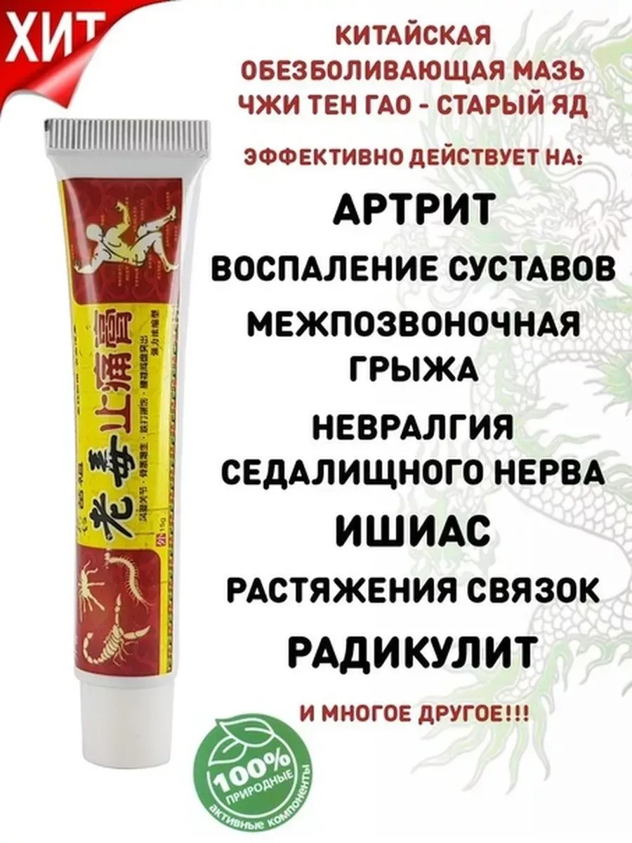 Эта мазь является универсальным средством для облегчения болей и воспалений. Она эффективно помогает при различных заболеваниях, таких как ревматоидный артрит, воспаление суставов, радикулит и другие воспалительные состояния. Чжи Тен Гао также отлично справляется с мышечной болью после интенсивных тренировок, ревматизмом, невралгией седалищного нерва и различными травмами.
