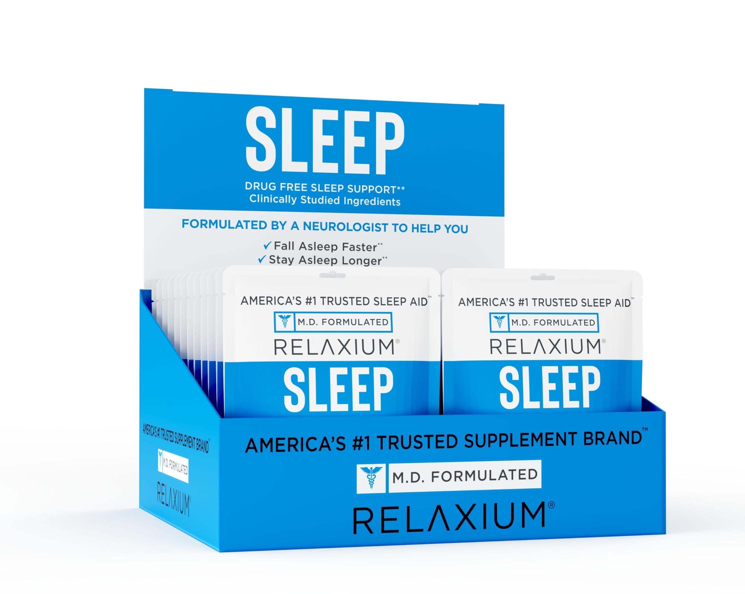 Experience the Effectiveness of Relaxium Sleep, the sleep aid developed by a clinical neurologist! Relaxium Sleep was developed by Dr. Eric Ciliberti, a board-certified physician specializing in Neurology and founder of the American Behavioral Research Institute. Doctor Ciliberti has been in practice for over 20 years. "I've developed a scientific breakthrough product line guaranteed to help you sleep and dramatically improve your mood during the day." Sleep and rest better the first night you try it with safe, effective Relaxium Sleep. Reaxium Sleep is a formula designed to help you best achieve an enjoyable, full night's sleep. Made with only the highest quality ingredients, this sleep supplement can you fall asleep faster, sleep longer without interruption, awake refreshed and alert by and improve concentration. It is the only sleep solution that contains Valerest to help induce sleep safely and has the perfect synergistic blend of melatonin, magnesium, passionflower, GABA, and chamomile to fight your nighttime woes. Relax the body, calm the mind, and regulate your natural sleep cycle with our Triple Action formula and FINALLY sleep through the night with Relaxium Sleep! Vegan.Consult your health care provider before taking any supplements, especially if you're taking prescription medications, are pregnant or nursing. MONEY-BACK GUARANTEE: We're so confident in the effectiveness of Relaxium Sleep that we back it up with a money-back guarantee. For refunds within 30 days of purchase please contact through your account or reach out to our customer support team members. PORTABLE CONVENIENT: Pre-packed pouches simplify nighttime routines take 1 capsule 30 min before bed for restful sleep anywhere. EASES TRAVEL STRESS: Passionflower and L-Tryptophan calm the mind, reducing stress from flights or new environments for better sleep quality. NON-HABIT FORMING: Drug-free blend with Ashwagandha, GABA, and chamomile supports natural sleep cycles, safe for daily use. Consult a doctor before use. 144-DAY TRAVEL SUPPLY: 24 pouches, each with 6 capsules (One or two capsule a day), perfect for long trips or extended use. Compact for carry-ons. SLEEP SUPPORT FOR TRAVEL: 5mg melatonin, magnesium glycinate, and Valerest promote faster sleep onset, ideal for jet lag or unfamiliar beds, helping you wake refreshed. DEVELOPED BY A RENOWNED NEUROLOGIST: Dr. Eric Ciliberti, MD developed Relaxium Sleep to help his patients and millions of others who suffer from lack of sleep This sleep aid has the perfect synergistic blend of melatonin, magnesium, passionflower, GABA, Ashwagandha, and chamomile to fight your nighttime woes It is the ONLY sleep solution that contains a proprietary ingredient, Valerest to help induce sleep safely. FALL ASLEEP, STAY ASLEEP: Relaxium's Triple-Action formula is guaranteed to help you wake up each morning without feeling groggy by restoring your natural sleep cycle, relaxing the body, and calming the mind This sleep supplement is non-habit forming and easy-to-swallow It is your worry-free answer to getting a better night's sleep.