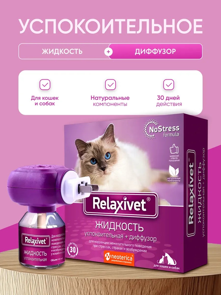 Relaxivet Комплект для собак и кошек: флакон 45 мл + диффузор