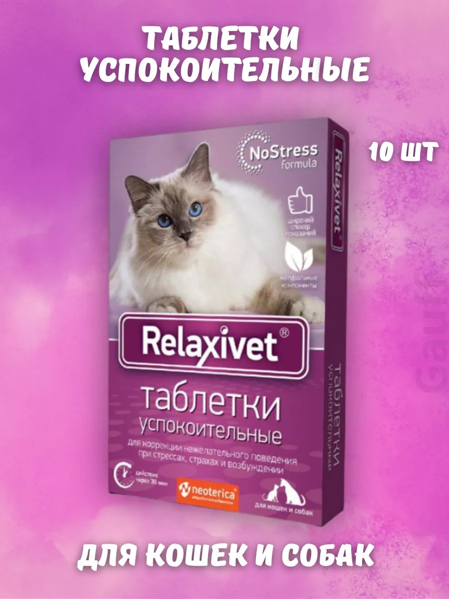Релаксивет таблетки успокоительные предназначены для коррекции нежелательного поведения при стрессах, страхах и возбуждении у кошек и собак.