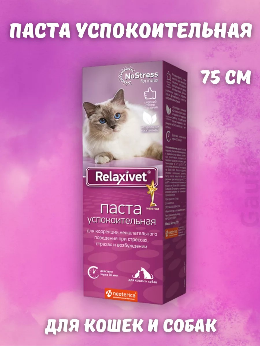 Кормовую добавку Релаксивет, пасту успокоительную, применяют для коррекции нежелательного поведения и повышения устойчивости нервной системы у кошек и собак к стрессу.