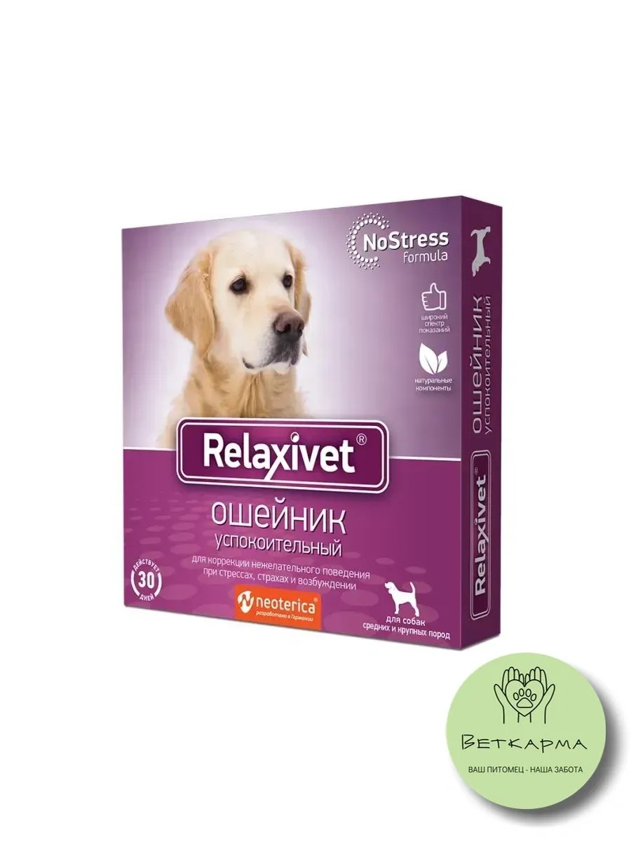 Ошейник «Релаксивет» (Relaxivet) — эффективное средство для успокоения кошек и собак. Он помогает корректировать нежелательное поведение при стрессе, страхе и возбуждении. Используйте его при долгой разлуке с хозяином, половом возбуждении, адаптации животного к новым условиям и для профилактики стресса.