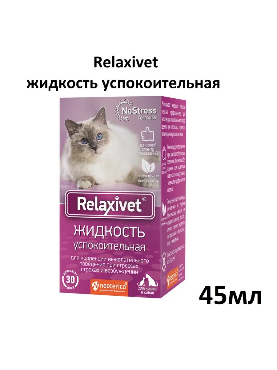 Релаксивет - это жидкость успокоительная, которая предназначена для коррекции нежелательного поведения при стрессах, страхах и возбуждении у кошек и собак.