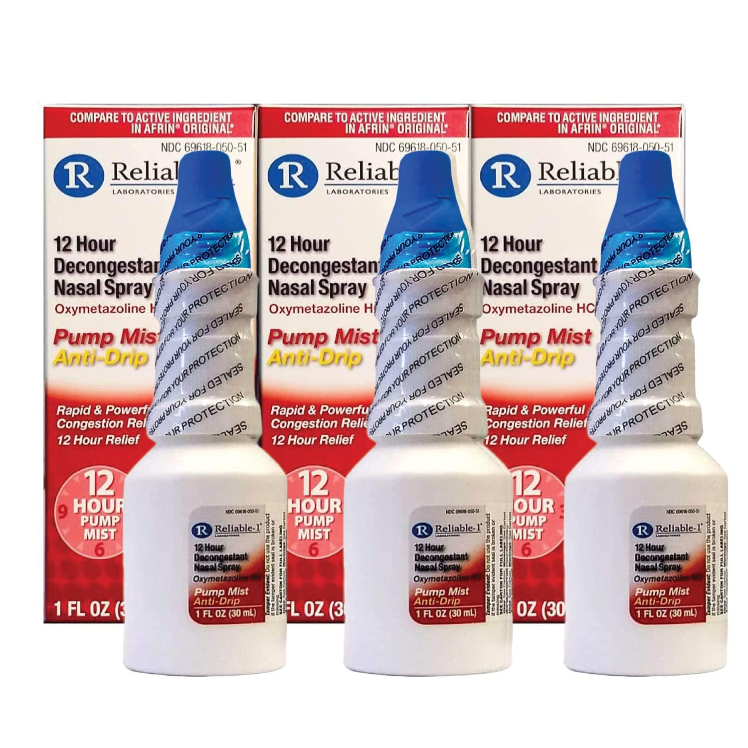 Reliable-1 Laboratories Nasal Spray 12 Hour Relief Nasal Decongestant | Rapid and Powerful Sinus Relief Nose Spray | Pump Mist Anti Drip Congestion Relief | Oxymetazoline HCI | 1 Fl Oz 3-Pack