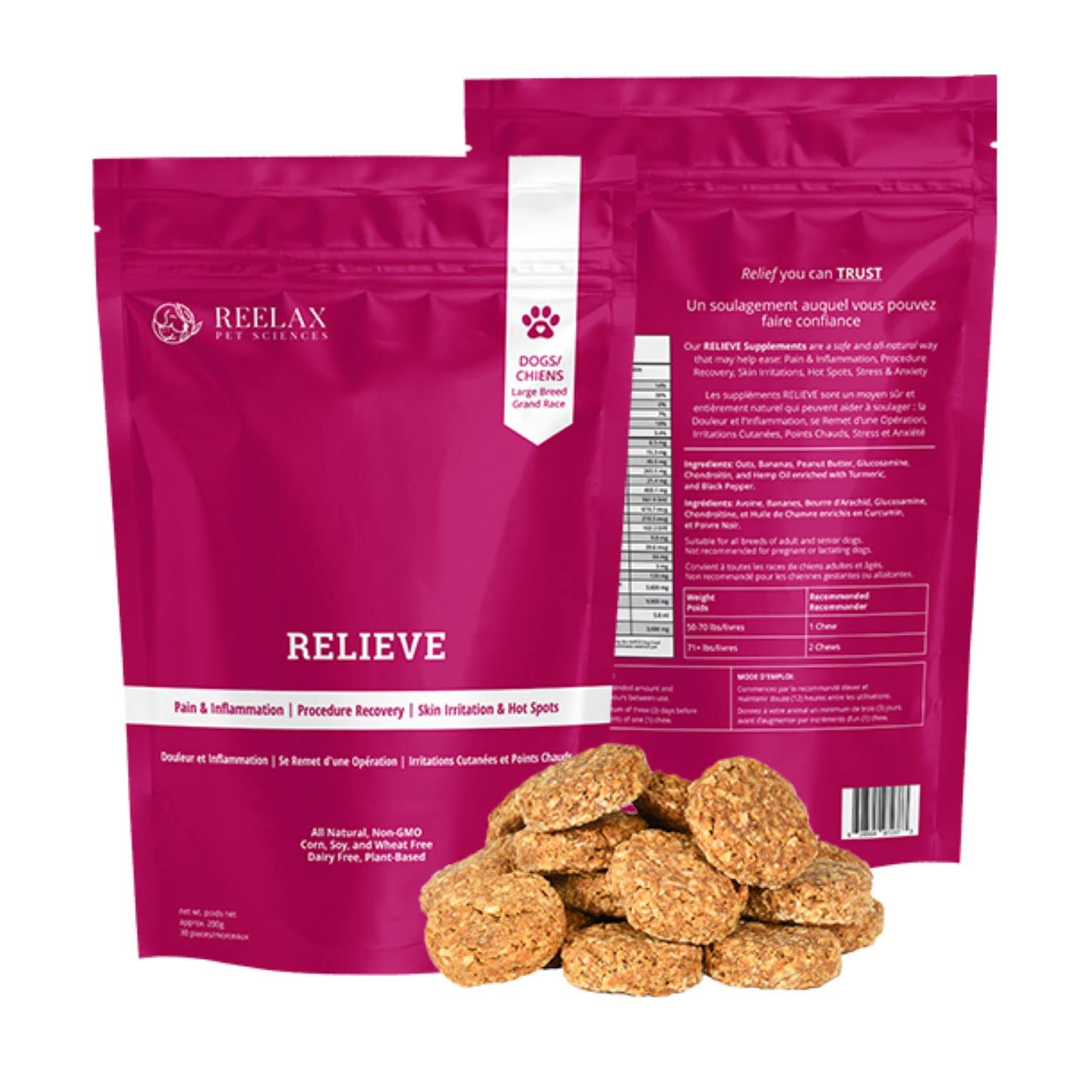 RELIEVE Pet Supplement for DOGS/CANINES - Chews (Large Breed) 200g | Calming Hemp Supplement | Pain and Inflammation | Procedure Recovery | Skin Irritations | Hot Spots | Stress and Anxiety | Viral Infections | Depression | Separation Anxiety Turmeric Bla