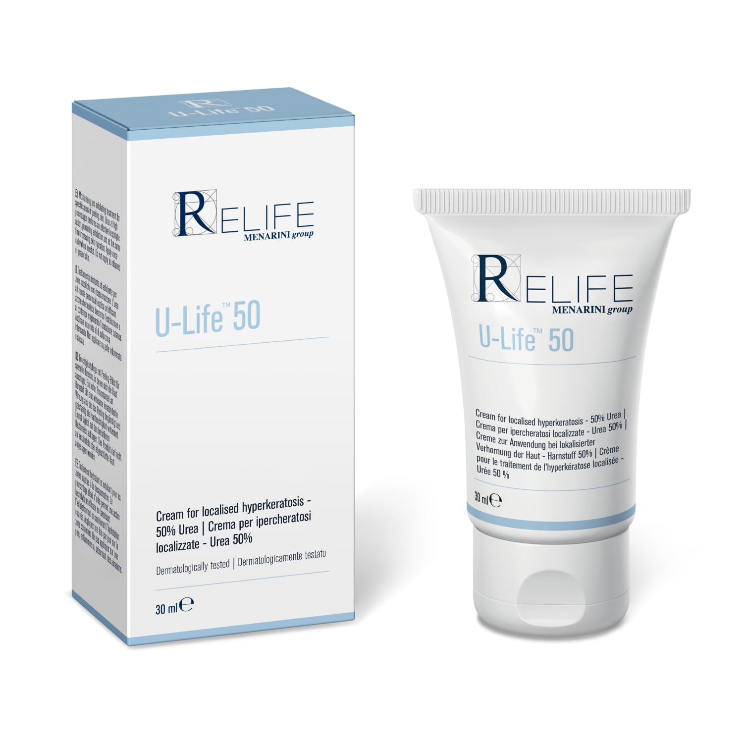 U-Life 50 is a product of the U-Life family, a moisturizing and keratolytic product line for the treatment of dry, very dry, rough and cracked skin. The U-Life line consists of selected urea and ingredients, selected depending on the area of application, to restore the skin barrier and proper moisture levels in all parts of the body, such as those most exposed to external factors (face and hands) and those prone to thickening (feet and elbow). Item number: ULIF2406A INGREDIENTS Urea, Lanolin, Paraffinum Liquidum, Petrolatum SAFETY WARNING Do not apply to inflamed or irritated skin. Avoid contact with eyes and mucous membranes. Keep out of the reach of children. See more30ml tube. Store the product between 5 C and 30 C. Low temperatures can change the structure of the product and make it difficult to remove from the hose. Shelf life after opening: 12 months. Do not use after the expiry date. Dermatologically tested. To use: apply once to the affected area. Do not apply to inflamed or irritated skin. Avoid contact with eyes and mucous membranes. Keep out of the reach of children. Moisturizing and peeling treatment for certain areas with flaking thanks to the high concentration of urea (peeling). Anhydrous paste with 50 urea with granular appearance due to the high urea content, suitable for localized hyperkeratosis.Relife U-Life 50 Peelingpasta voor gelokaliseerde hyperkeratose, voor gebarsten en schilferende huid, 50 urea, tube van 30 ml U-Life 50 is een product van de U-Life-familie, een hydraterende en keratolytische productlijn voor de behandeling van droge, zeer droge, ruwe en gebarsten huid. De lijn U-Life bestaat uit geselecteerd ureum en ingrediënten, die afhankelijk van het toepassingsgebied zijn geselecteerd om de huidbarrière en het juiste vochtgehalte in alle delen van het lichaam te herstellen, zoals degenen die het meest worden blootgesteld aan externe factoren (gezicht en handen) en die gevoelig zijn voor verdikkingen (voeten en elleboog). Artikelnummer: ULIF2406A INGREDIËNTEN Urea, Lanoline, Paraffinum Liquidum, Petrolatum VEILIGHEIDSWAARSCHUWING Niet aanbrengen op ontstoken of geïrriteerde huid. Vermijd contact met ogen en slijmvliezen. Buiten het bereik van kinderen bewaren. Meer bekijken30 ml tube. Bewaar het product tussen 5 C en 30 C. Lage temperaturen kunnen de structuur van het product veranderen en het moeilijk maken om uit de slang te halen. Houdbaarheid na openen: 12 maanden. Niet gebruiken na de vervaldatum. Dermatologisch getest. Gebruik: eenmaal aanbrengen op het getroffen gebied. Niet aanbrengen op ontstoken of geïrriteerde huid. Vermijd contact met ogen en slijmvliezen. Buiten het bereik van kinderen bewaren. Vochtinbrengende en peelende behandeling voor bepaalde gebieden met schilfering dankzij de hoge concentratie van ureum (peeling). Watervrije pasta met 50 ureum met korrelig uiterlijk vanwege het hoge ureumgehalte, geschikt voor gelokaliseerde hyperkeratose.