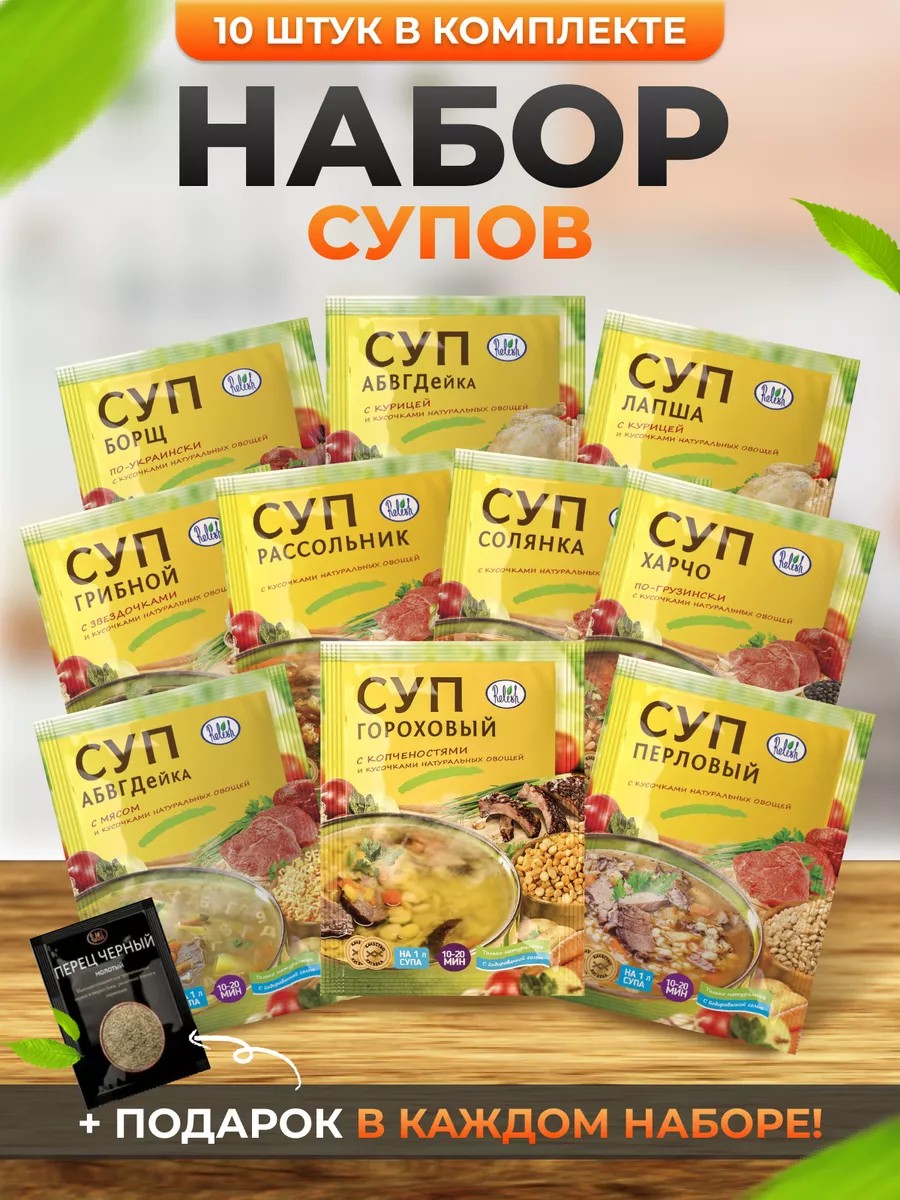 С нашим набором вы сможете наслаждаться разнообразными вкусами супов, не теряя времени на подготовку ингредиентов и долгую варку. Просто откройте пакет, добавьте воду и нагрейте - и ваш ароматный и сытный суп будет готов к употреблению!