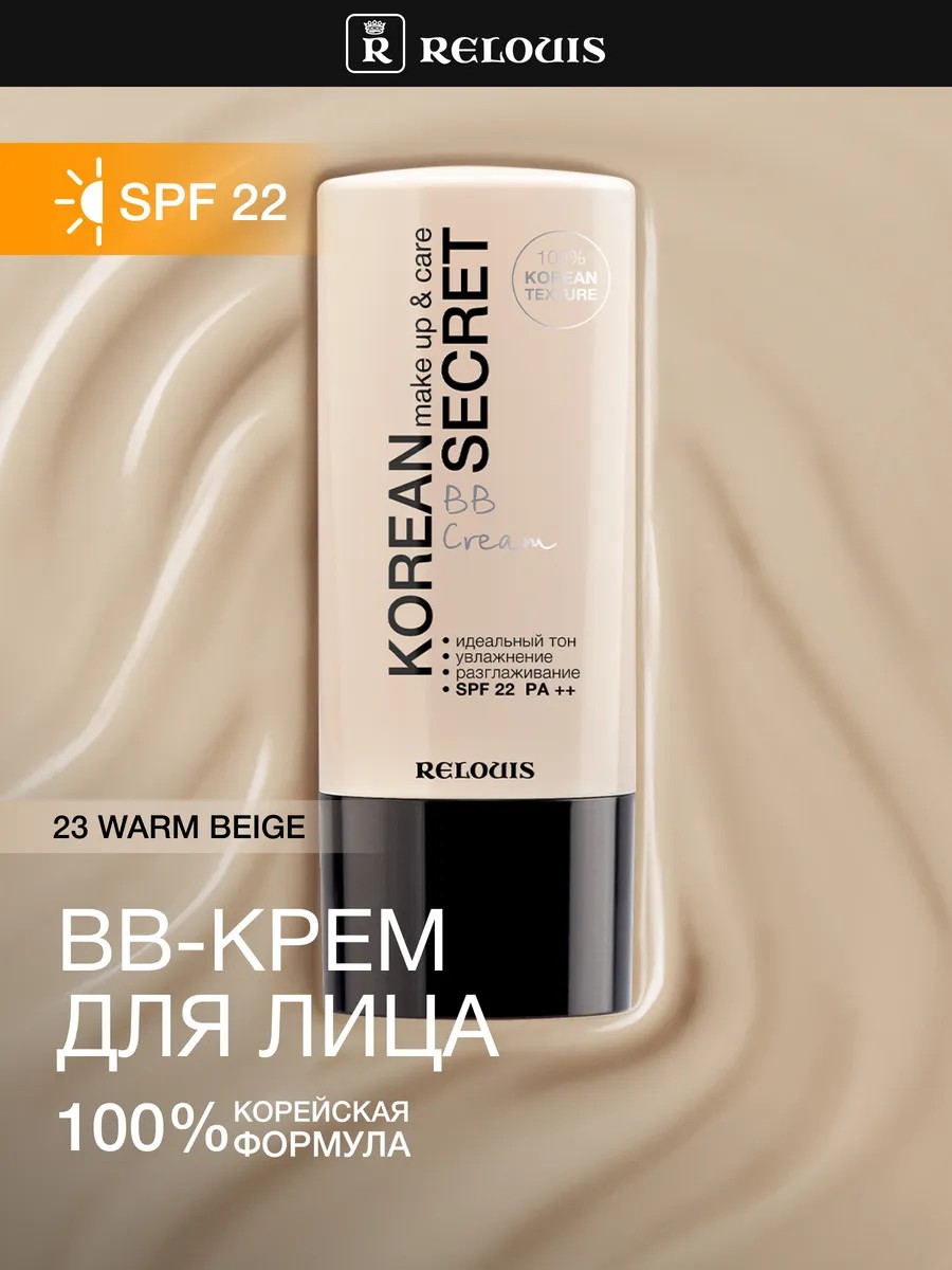 BB-cream KOREAN SECRET make up & care BB Cream from the Belarusian cosmetics brand Relouis from the KOREAN SECRET collection, like all textures of the series, is made in Korea and has an innovative formula. Extract of Asian centella and purslane have a moisturizing and regenerating effect, and collagen and peptides keep the skin young and elastic.