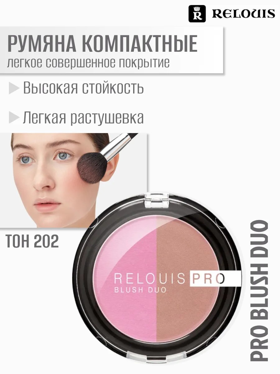Relouis Румяна компакт. "PRO blush duo" № 202. 2-х цв. (72 розовая лилия / 74 букет сирени) 5г.