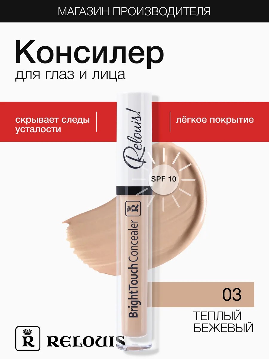 Bright Touch Relouis Concealer from the Belarusian brand Relouis is an indispensable assistant in creating the perfect makeup. Its moderately dense creamy texture with light-reflecting particles perfectly conceals dark circles under the eyes, bruises, and spider veins.