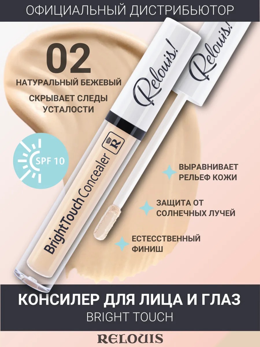 Мечтаете о безупречном тоне лица, свежем взгляде и сияющей коже? Консилер Bright Touch тон 02 натуральный бежевый от белорусского бренда RELOUIS - это ваш секрет красоты!