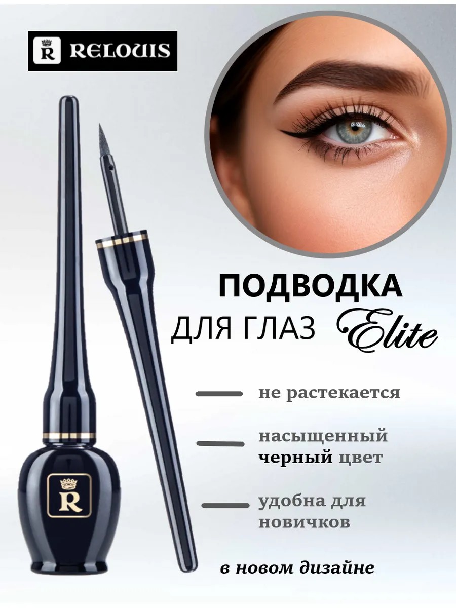 Relouis liquid eyeliner is the perfect solution for creating a striking and sophisticated "doe-eye" look, highlighting the natural beauty and expressiveness of a woman's face. This Elite eyeliner features a tapered brush that allows you to apply precise lines of any thickness. The rich black color of the eyeliner makes your eyes look even more open and expressive, captivating everyone's attention. Thanks to its special, long-lasting texture, the eyeliner can be easily drawn along the lashes, creating the visual effect of thickness and fullness. This black liquid eyeliner dries quickly and does not smudge. Elite eyeliner is an exceptionally high-quality product, made in Belarus, that is sure to become an essential part of your everyday makeup routine.