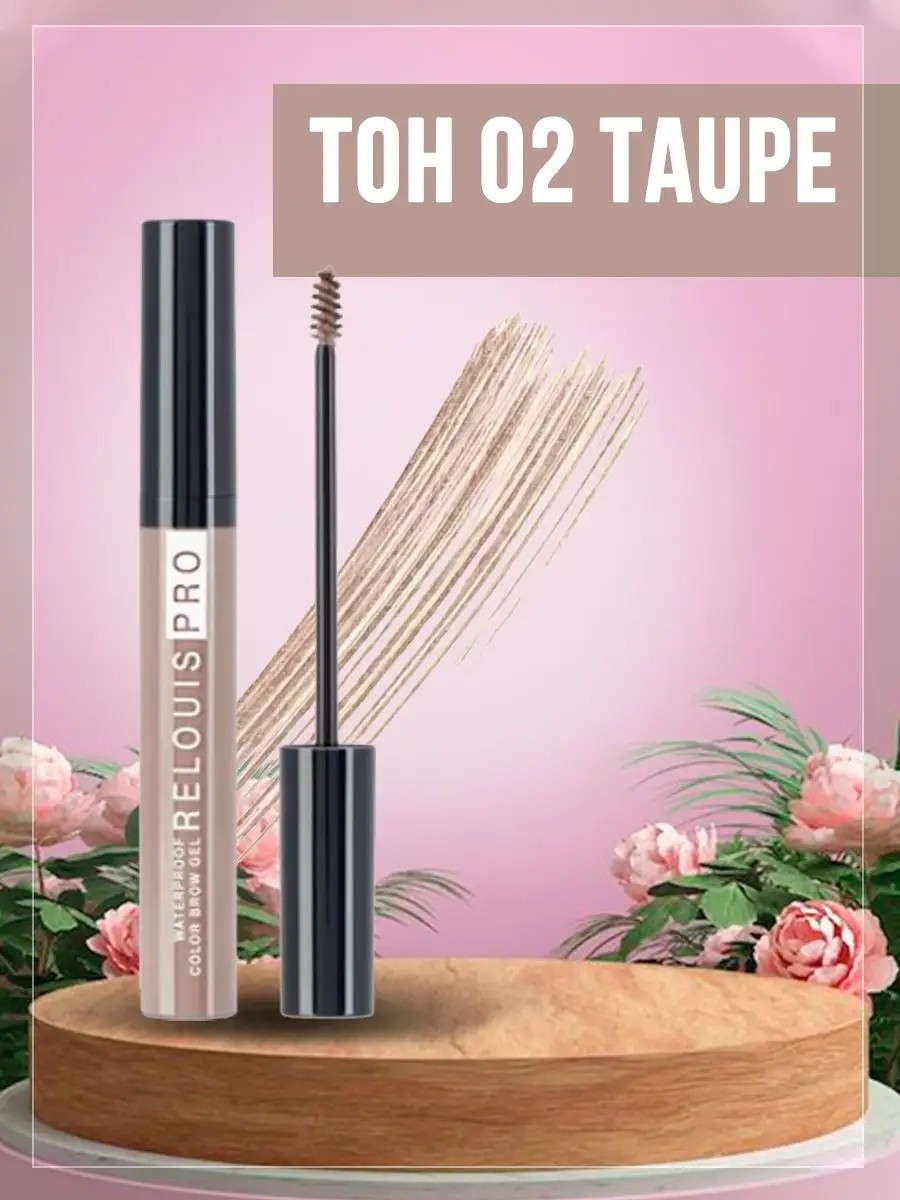 Relouis Pro Waterproof Color Brow Gel. Wow. A sensation of eyebrow color and durability! Waterproof formula. Super hold and shaping. Fills and enhances brow color. Easy application and a natural effect. The miniature Italian brush evenly and neatly distributes the gel over the brows, coloring each hair, giving them additional thickness. The brush makes it easy to achieve the desired shape and work on any brow: from thick and wide to thinner. Unique shades for every woman: 01 light blonde, 02 cool taupe, 03 chocolate brown, and 04 rich dark brown look natural and do not oxidize. The gel applies neatly, shaping and adding color to the brows, making them thicker and more well-groomed! The waterproof formula and super hold of this new gel will give you perfect brows for a long time! A versatile miniature brush -- A perfectly matched range of shades -- Volume and shape for even the thinnest eyebrows -- A natural effect and natural look, as if they were your eyebrows, only better -- Waterproof and super-fixable!