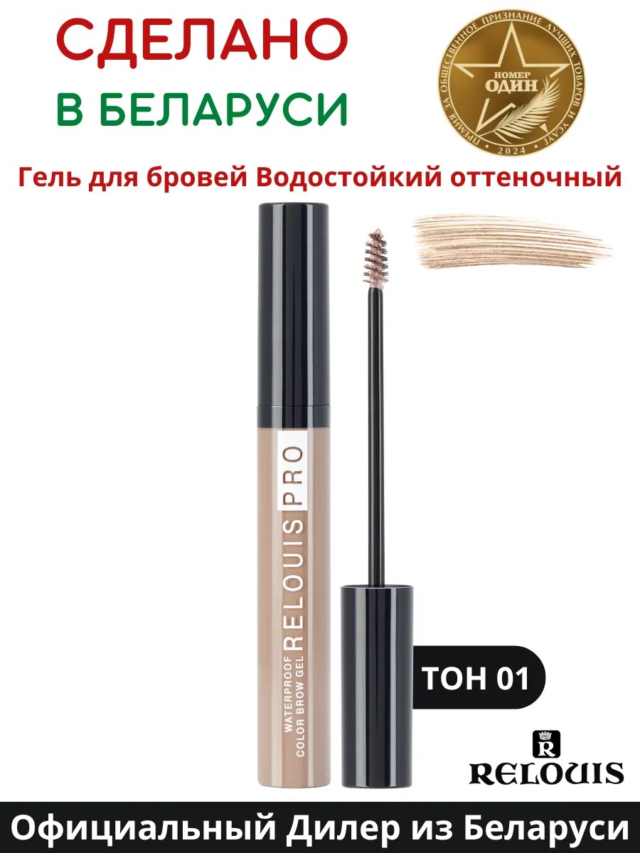 КомплектацияГель для бровей водостойкий оттеночный Relouis PRO Waterproof Тон 01