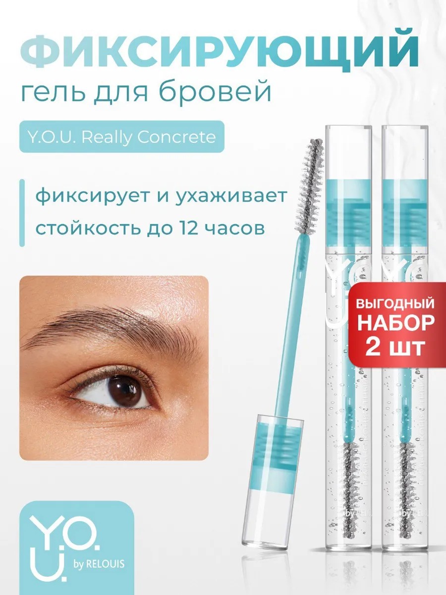 REALLY CONCRETE Fixing Gel is the best eyebrow styling product. Its new innovative formula provides super-strong hold and a laminating effect without leaving white residue or sticking together. Durable ingredients ensure long-lasting results, while D-panthenol restores and cares for healthy-looking brows. A convenient bristle brush combs through brows, giving them the desired shape. Be irresistible with YOU from the Belarusian brand Relouis! Using RELOUIS' Really Concrete gel will allow you to easily shape your brows, keeping them in place all day long. This gel is an excellent choice for those who value long-lasting and reliable makeup. Y.O.U. Really Concrete—your personal brow artist in every bottle!