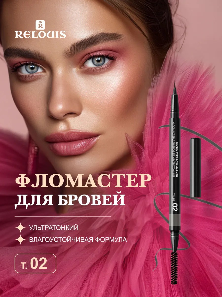 Relouis Фломастер для бровей ультратонкий Micro Eyebrow Marker, тон 02 taupe / тауповый / серо-коричневый. Объём: 0,3 мл.