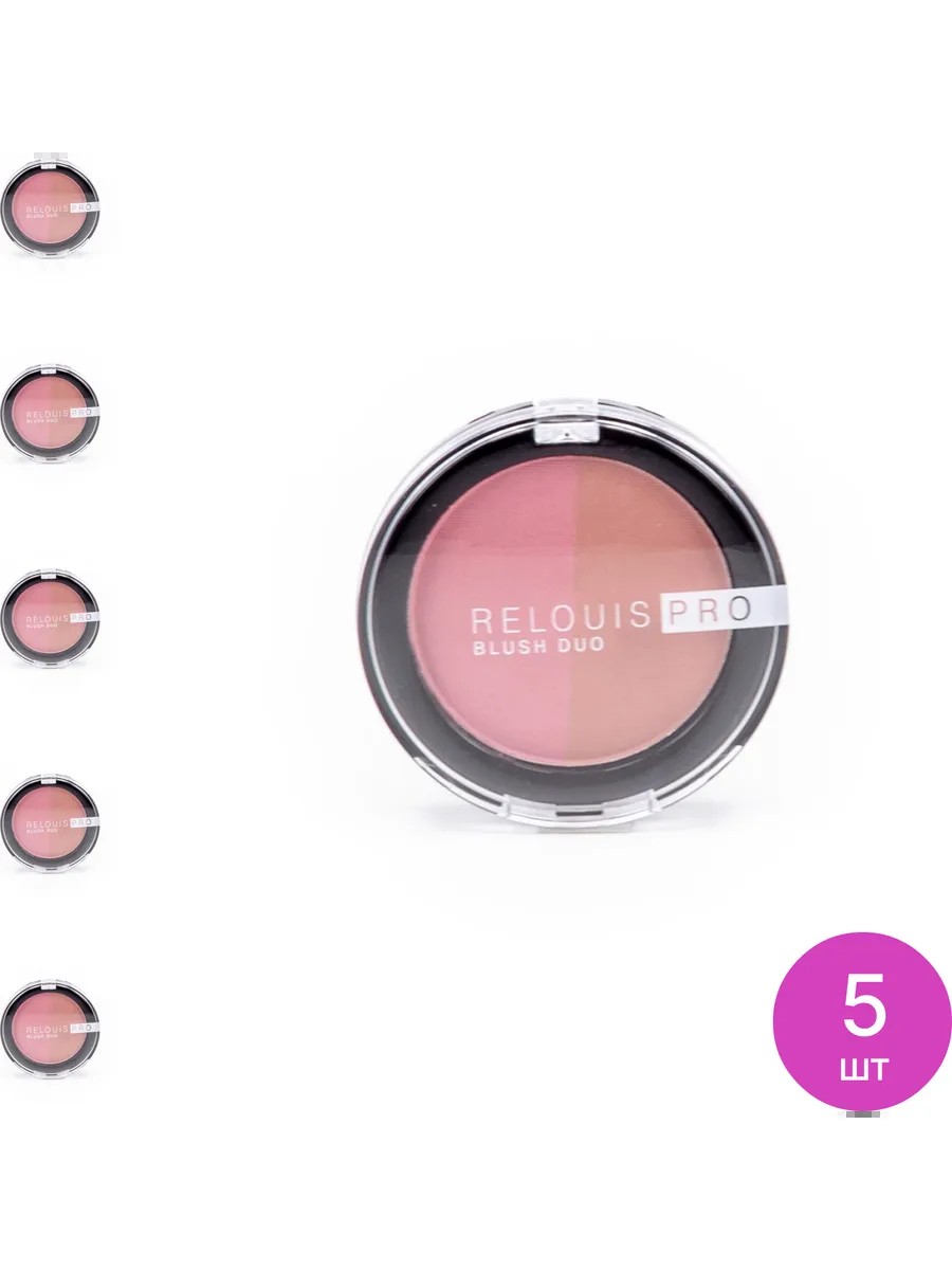 RELOUIS Румяна для лица Pro Blush Duo 202 розовые в футляре 5г, 5 шт