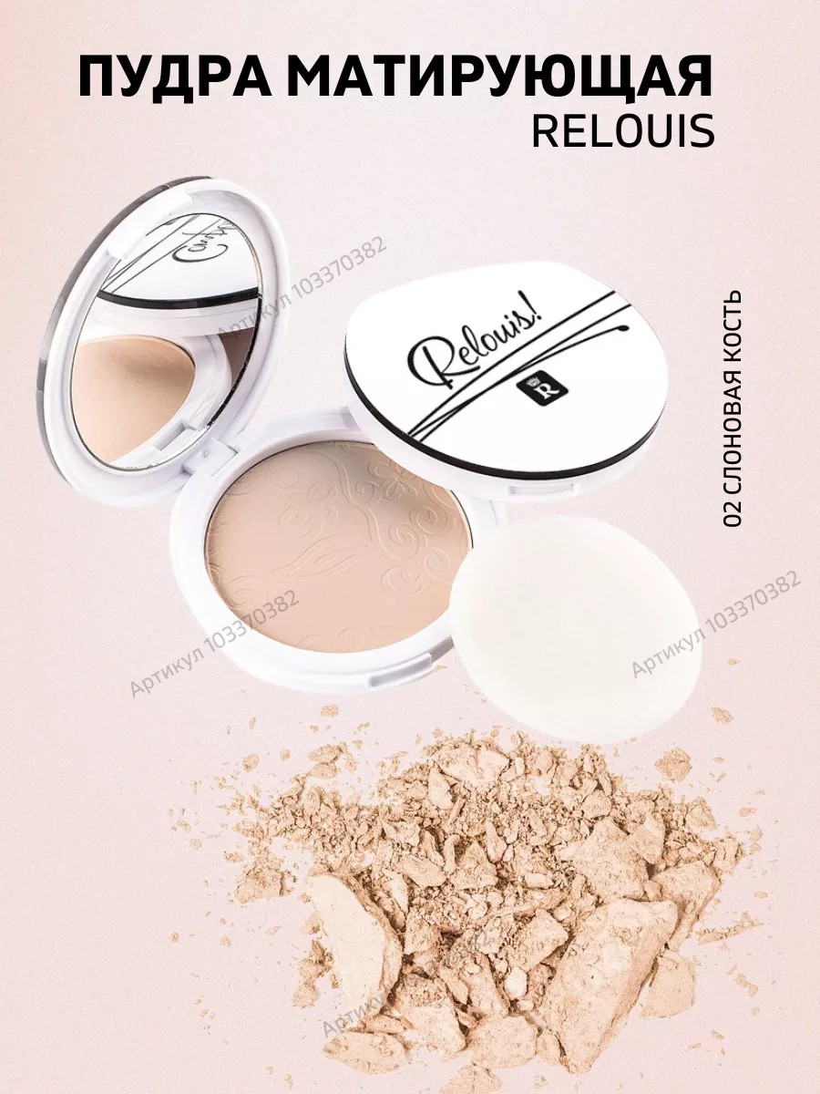Complimenti! Relouis Women's Face Powder by Relouis is a mattifying, toning, and silky powder that evens out skin tone, sets makeup, and prolongs its beauty and durability. Thanks to absorbents, the powder removes oily shine from the T-zone and prevents its appearance. Targeted esters in the product give the powder extra softness and silkiness. Apply the powder with a classic brush or a special sponge. The line includes 5 universal shades—the powder is suitable for tanned and fair skin, matches any shade of foundation, and is suitable for any skin type. Compact format: a case with a mirror and a powder puff, convenient to take with you. Relouis compact powder, Belarusian cosmetics, budget face powder, for yourself for makeup artists, evening out skin tone, matte skin, light texture, makeup, tone. Relouis.