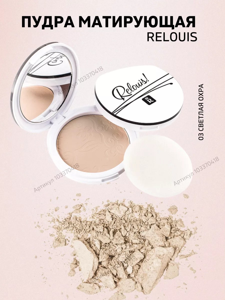 Complimenti! Relouis Women's Face Powder by Relouis is a mattifying, toning, and silky powder that evens out skin tone, sets makeup, and prolongs its beauty and durability. Thanks to absorbents, the powder removes oily shine from the T-zone and prevents its appearance. Targeted esters in the product give the powder extra softness and silkiness. Apply the powder with a classic brush or a special sponge. The line includes 5 universal shades—the powder is suitable for tanned and fair skin, matches any shade of foundation, and is suitable for any skin type. Compact format: a case with a mirror and a powder puff, convenient to take with you. Relouis compact powder, Belarusian cosmetics, budget face powder, for yourself for makeup artists, evening out skin tone, matte skin, light texture, makeup, tone. Relouis.