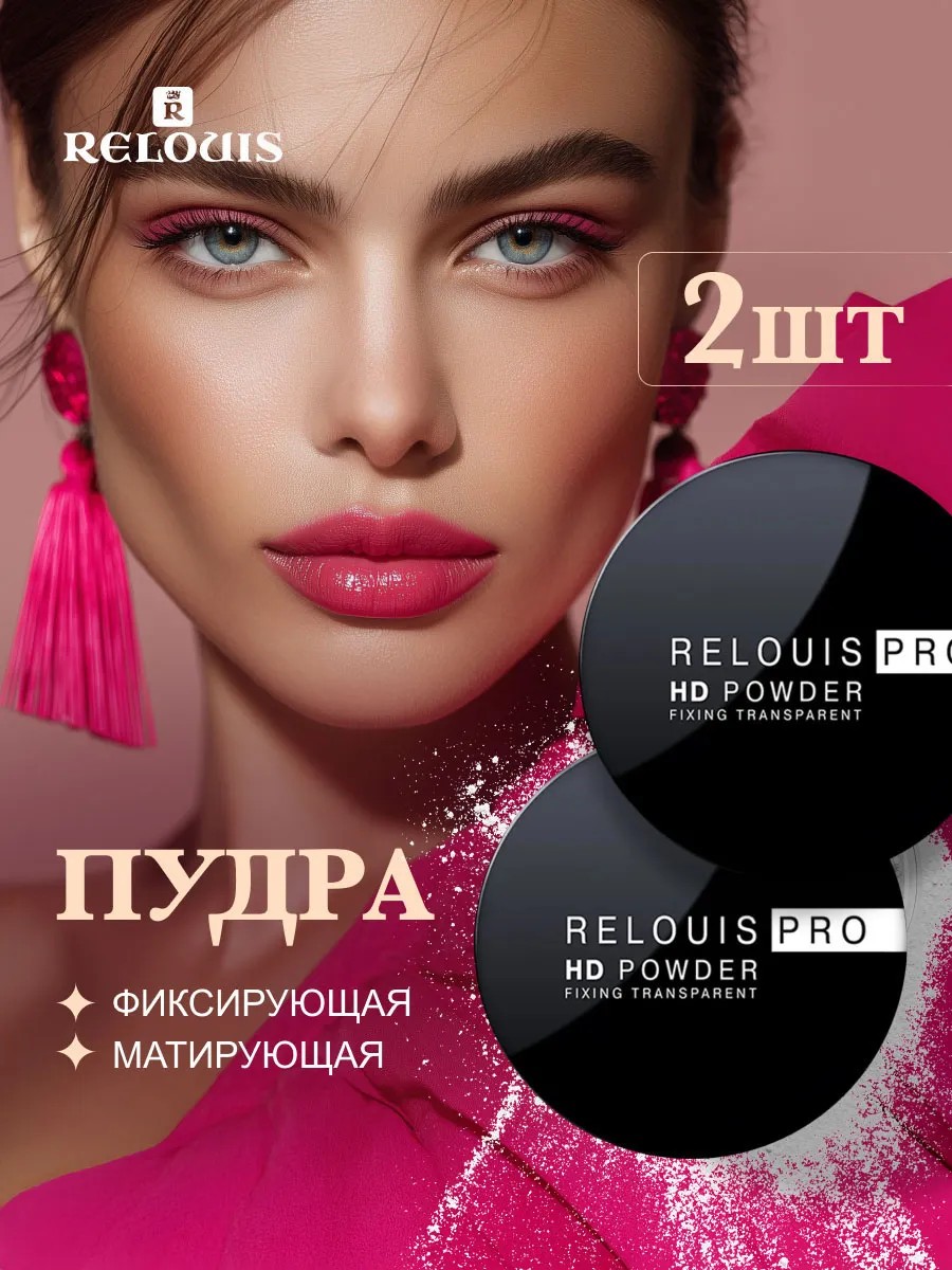 Relouis Набор, Пудра для лица фиксирующая прозрачная HD Powder, тон прозрачный. Объём: 10г*2шт.