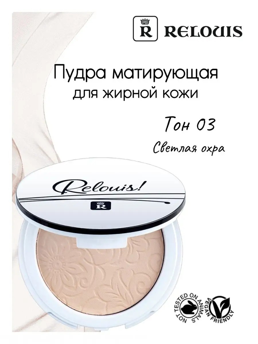 Пудра для лица Relouis от Релуи – матирующая, тонирующая, шелковистая, для выравнивания рельефа, фиксации макияжа и продления его красоты и стойкости. Благодаря входящим в состав абсорбентам пудра убирает жирный блеск с Т-зоны и предотвращает его появление. Сложные эфиры направленного действия придают пудре дополнительную мягкость и шелковистость. Наносить пудру можно классической кистью или специальным спонжем. В линейке 5 универсальных оттенков - пудра подходит для загорелой и светлой кожи, сочетается с любым оттенком тонального крема, подходит для любого подтона кожи и любого цветотипа внешности. Компактный формат: футляр с зеркальцем и пуховкой, удобно брать с собой. Белорусская косметика выбор многих покупательниц, попробуй и ты!