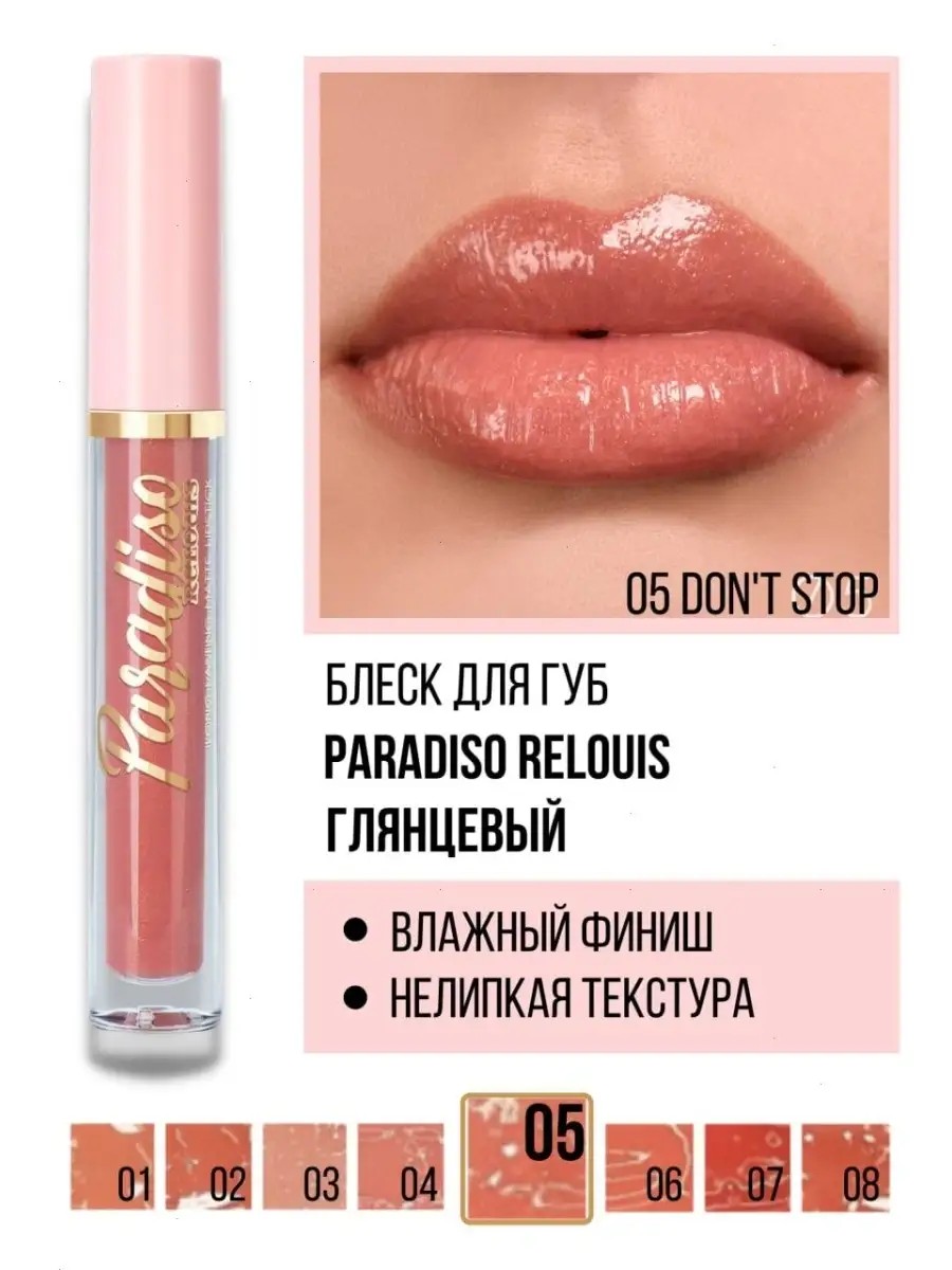 Dive into a world of vibrant shades and hydration with Paradiso lip gloss from Belarusian brand Relouis. This lip gloss is designed to highlight your individuality and add visual volume to your lips. With a unique formula that provides a dewy finish, it not only adds shine but also keeps your lips hydrated all day long. The lightweight texture spreads evenly, creating a fuller, more appealing effect. Choose Paradiso lip gloss and enjoy a flawless look that will delight you with its shine and comfort!