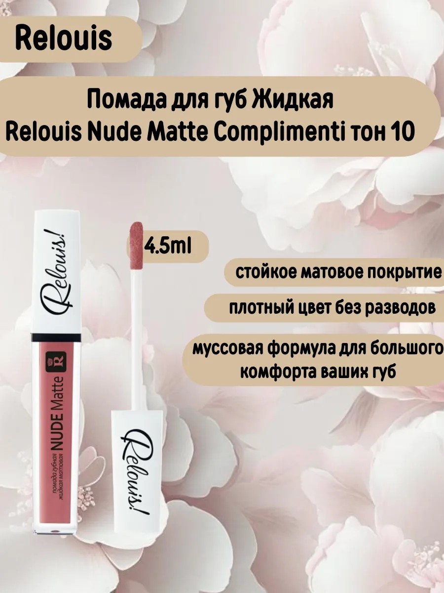 Помада для губ Жидкая Relouis Nude Matte Complimenti тон 10 нюдовая.
