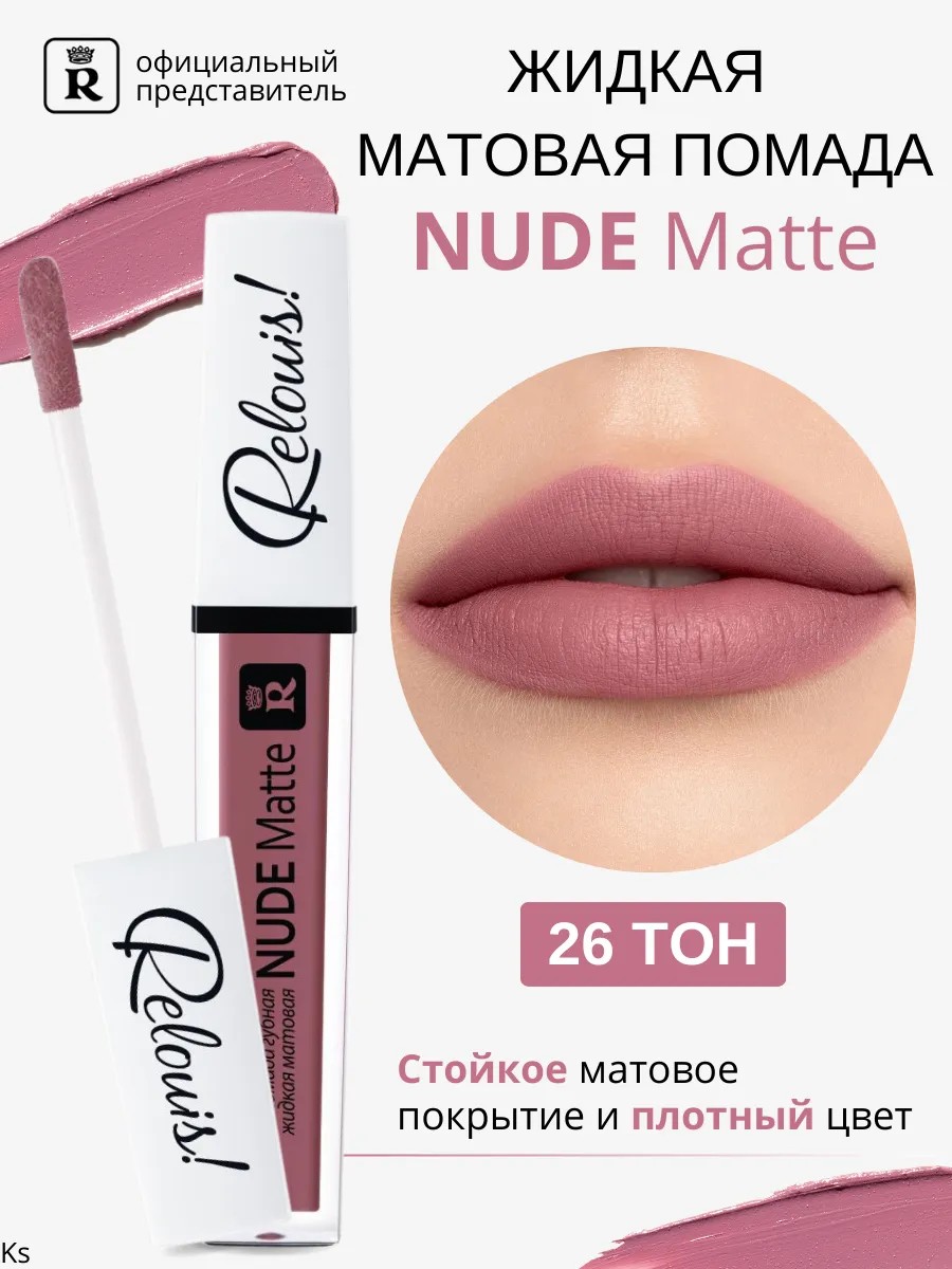 Universal, long-lasting matte lipstick NUDE MATTE from the Belarusian cosmetics brand RELOUIS! Natural nude shades to suit every taste, a mousse formula for added comfort, long-lasting matte finish, and streak-free, opaque color. The soft applicator glides smoothly over lips, leaving a flawlessly smooth and even finish with a velvety effect. This tinted liquid matte lip gloss has a light, creamy texture and a diverse palette of colors. The long-lasting and comfortable formula of this creamy lip gloss does not smudge or spread, and it does not dry out lips. After applying this creamy lipstick, you will feel a velvety effect, leaving lips moisturized and nourished. If you have chapped lips, pre-exfoliate with a light lip scrub. This best-selling lipstick in trendy shades will complement your evening look and is perfect for everyday makeup. Relui women's decorative cosmetics are an indispensable tool for creating a unique style and image! The delicate shades in this Belarusian brand's line are perfect for girls and teenagers. Belarusian makeup products are a great gift for women on March 8th, birthdays, New Year's, February 14th, or just a surprise for any occasion. Pink glossy lipstick, lip tint with shine, moisturizing liquid glass, lip balm, plumper stick, pearlescent luxury, nude peach, long-lasting nude satin, nude lipstick pencil in a tube with glitter, nude nude top coat, fuchsia gloss, red burgundy, Korean wine-colored, matte, creamy, satin, dark.