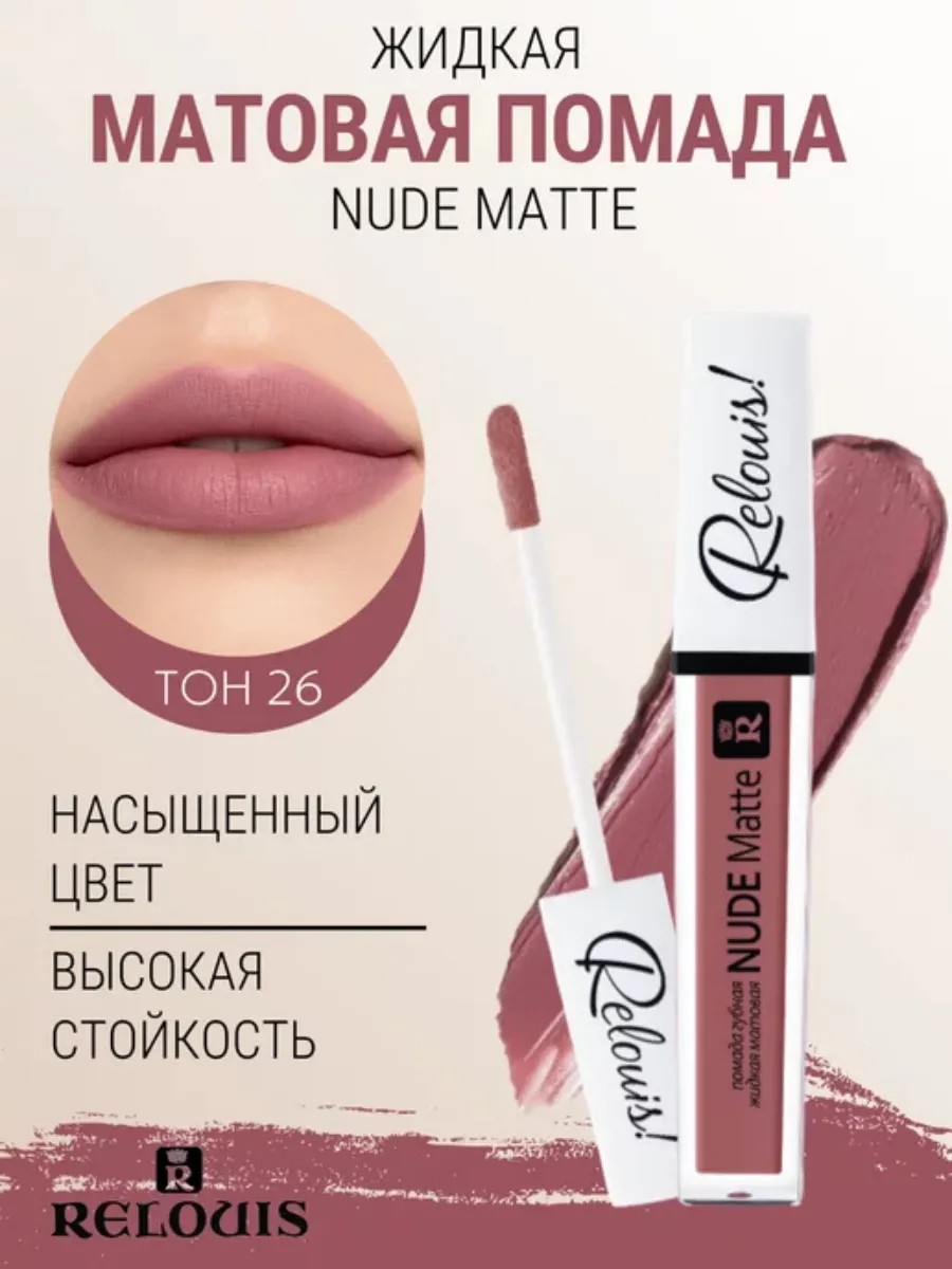 Освежи свой образ с «NUDE MATTE» от RELOUIS: Матовая красота, воплощенная в каждом оттенке! Нюдовая губная помада нужного цвета, отличного качества, естественно выглядеть и держаться весь день, не размазываясь. Мы знаем секрет красивых губ! В основе макияжного бьюти - продукта с влагостойким эффектом лежит уникальная муссовая формула, обеспечивающая комфорт. Вы можете выбрать любой из огромного разнообразия нюдовых тонов. Натуральные оттенки подойдут для разного типа кожи. Декоративная цветная помадка обеспечит идеальное стойкое матовое покрытие и красивый плотный цвет без разводов. Вам осталось только выбрать свой любимый идеальный оттенок розового из нашей палитры! Будьте самой красивой в отпуске этим летом или весной! Используйте яркий или нежный для своего образа и стиля. Суперстойкая популярная помада с бархатной текстурой проста в нанесении и снятии. Одним взмахом кисточки она меняет ваши губки. Вы можете использовать базу для наилучшего эффекта перед нанесением продукта. Устойчивая оттеночная помада приятно ощущается даже на сухой коже. Она обеспечивает уход, ровный контур и красивый модный цвет. Это отличное средство для летнего или весеннего макияжа. Оттенки помады из нашей коллекции подойдут также для создания отличного лука на осень. Ваша помада - это ваше секретное оружие. Идеальный оттенок позволяет вам чувствовать себя готовой ко всему - от вечера с друзьями до собеседования с потенциальным работодателем.