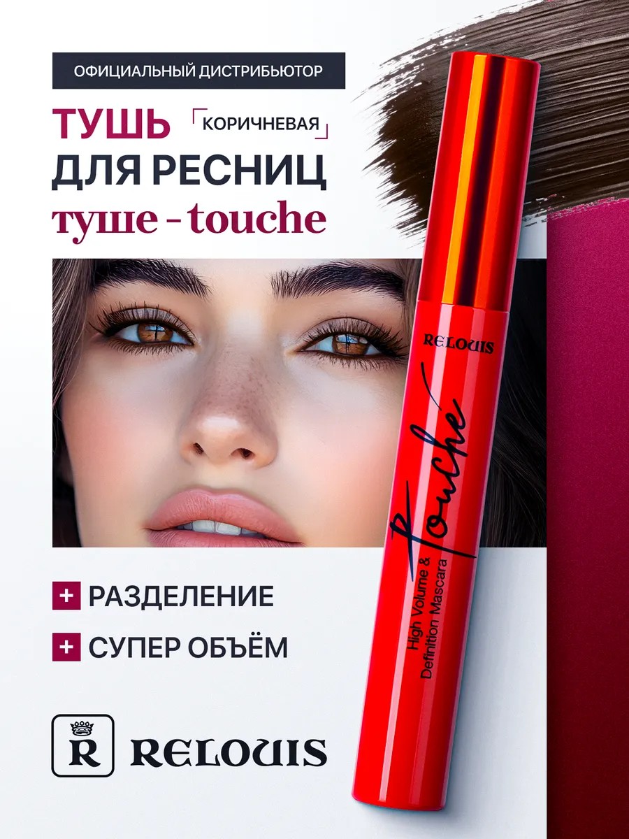 RELOUIS Тушь для ресниц коричневая объем и разделение Touché
