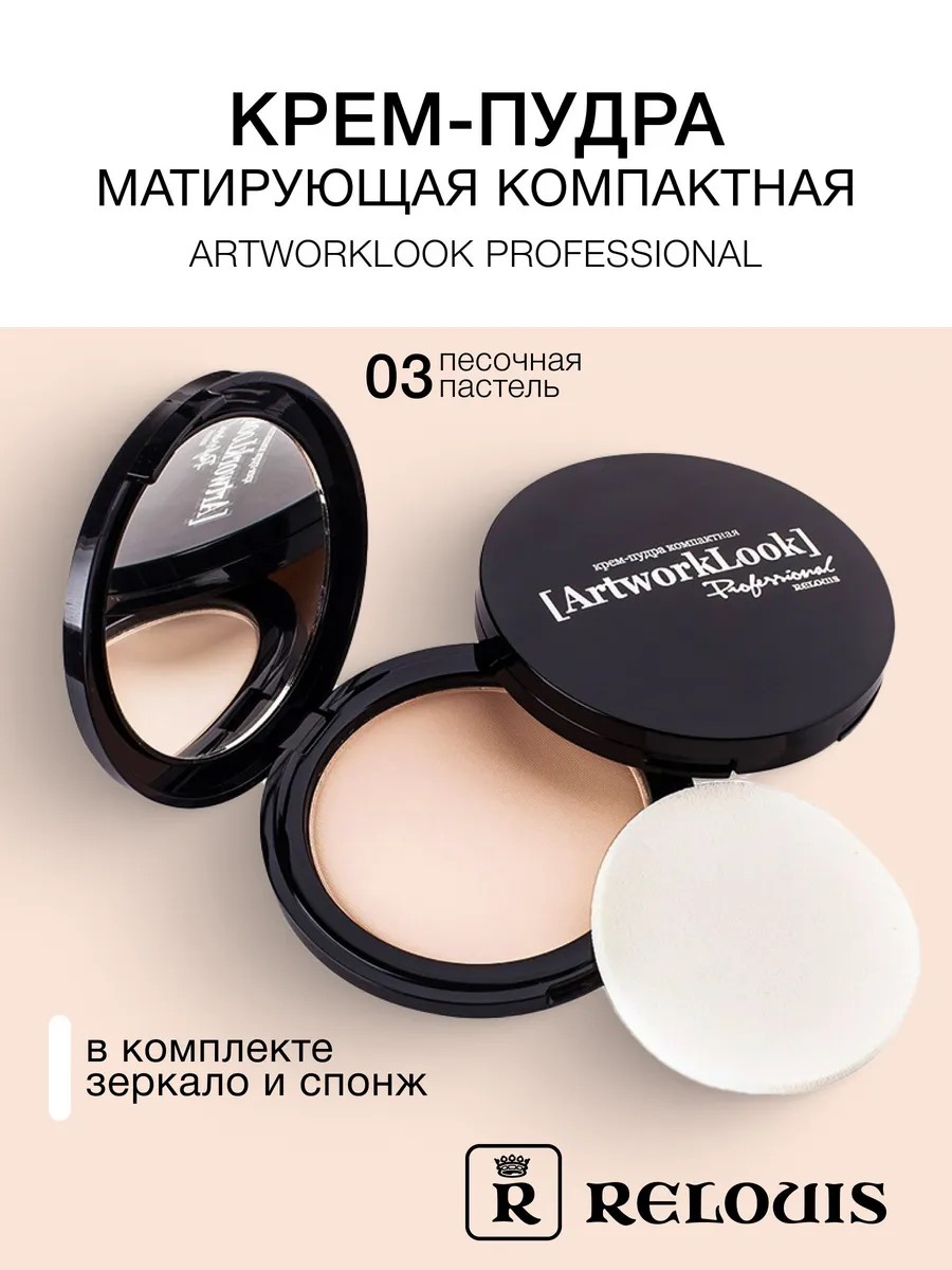 Компактная прессованная пудра для лица для макияжа с зеркалом и спонжем от белорусского бренда Relouis. Может ипользоваться как сухой продукт, так и влажным способом вместо тонального крема. Плотная матовая текстура выравнивает кожу и убирает блеск, поэтому является идеальным выбором для жирной кожи. Выберите свой идеальный тон от светлого до насыщенного бежевого.