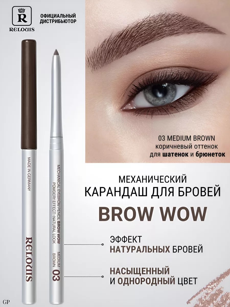 RELOUIS Карандаш механический для бровей BROW WOW 03 MEDIUM BROWN
