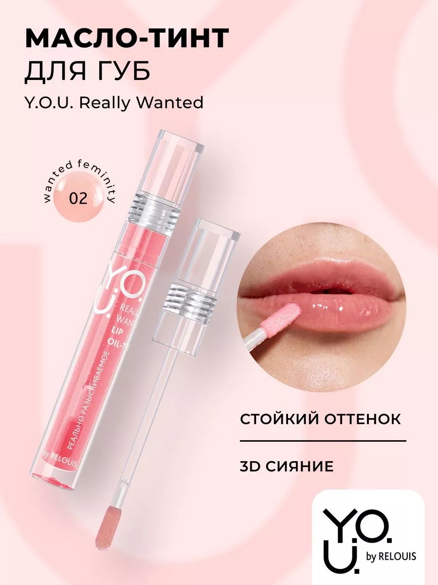 Встречайте! Коллекция Y.O.U. от белорусского бренда RELOUIS. Твой поиск завершен, готовь свои губы к удовольствию — масло-тинт Y.O.U. Really Wanted здесь! Это уникальный продукт, он включил в себя все "сильные" свойства масла для губ (сияние, увлажнение, питание) и тинта для губ - естественный легкий тонирующий стойкий пигмент. Масло-тинт Really Wanted с его невесомой жидкой скользящей текстурой, легким покрытием и нежным оттенком для чувственных и соблазнительных губ! Масло жожоба в составе геля увлажняет, питает и ухаживает. (Осторожно, удовольствие вызывает зависимость!) Легкая комфортная глянцевая не липкая текстура. 3D сияние и приятное скольжение по губам. Тинтующие полу прозрачные компоненты придают нежный стойкий оттенок, тон 01 придает губам нежный естественный бледно розовый цвет. Масло жожоба увлажняет и питает, защищает губы от иссушения. Удобный плоский аппликатор для удовольствия от равномерного нанесения масла для губ с оттенком. Масло тинт станет вашим любимым предметом косметики для макияжа. Y.O.U. – красота это ты!