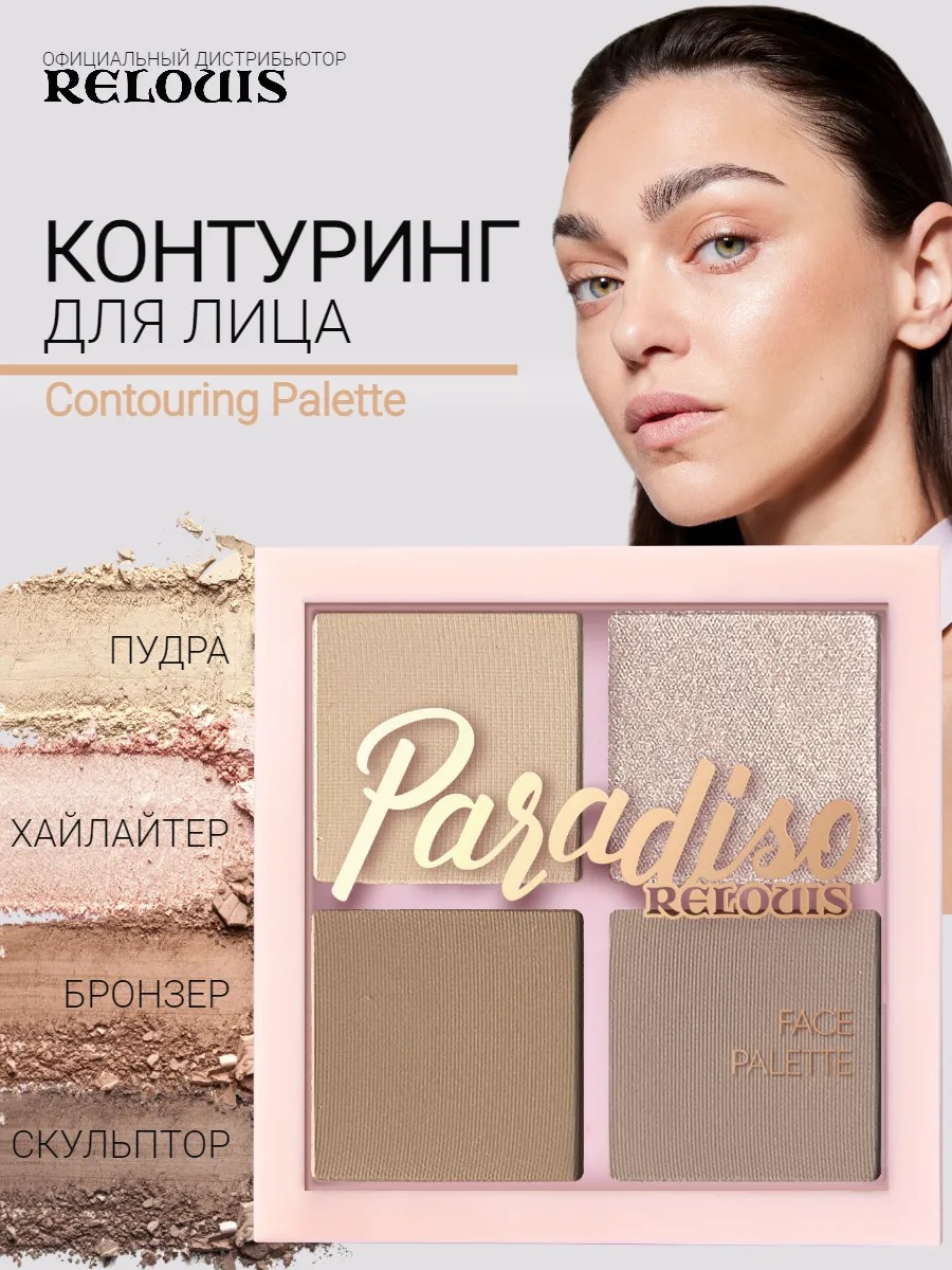 Палетка для макияжа лица Paradiso Sun универсальная для макияжа лица, в которой есть всё для твоего идеального образа! Хайлайтер с очень тонким покрытием добавляет коже великолепное деликатное сияние. Матовые румяна освежающего розового оттенка придают коже нежный румянец. Универсальная палетка, в которой есть все для идеального контуринга! Все бестселлеры RELOUIS в одной палетке: