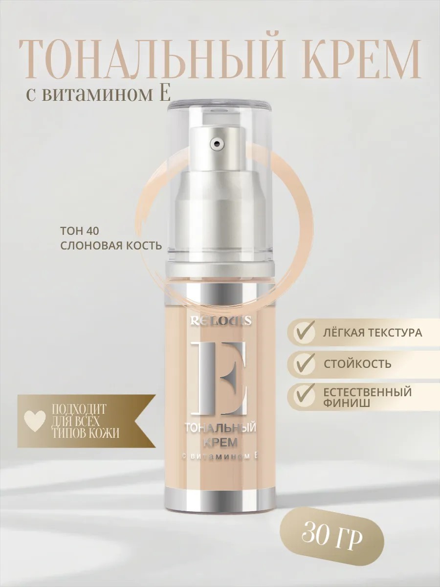 ТОНАЛЬНЫЙ КРЕМ С ВИТАМИНОМ Е. Свойства безупречного тонального средства на каждый день. Крем имеет лёгкую пластичную текстуру, улучшенную стойкость и хорошую кроющую способность, при этом обеспечивает идеальный естественный финиш. Витамин Е известен своими антиоксидантными свойствами и способствует улучшению защитной функции кожи. Без отдушки. Подходит для всех типов кожи. В обновлённой гамме представлены 4 универсальных оттенка.