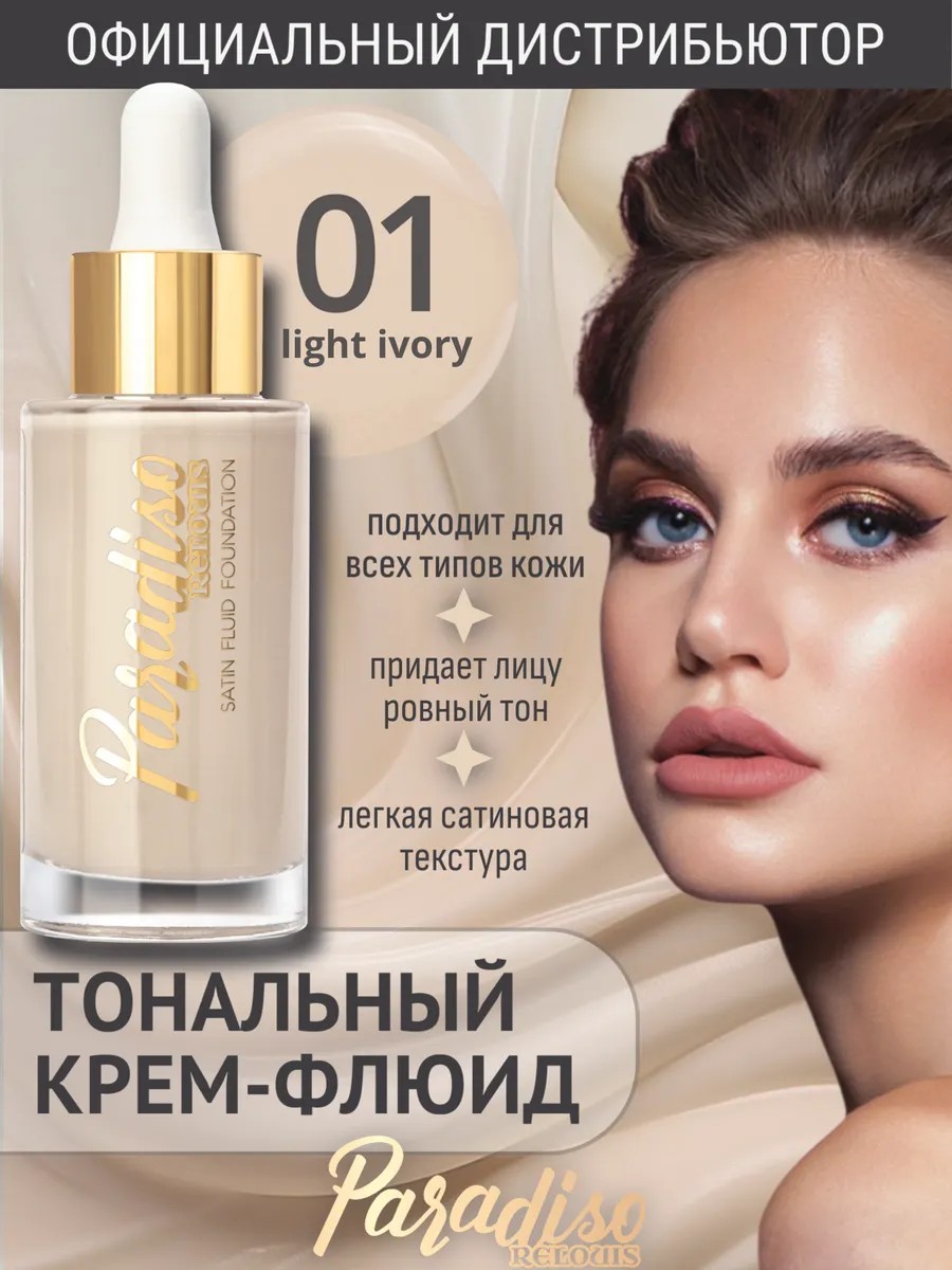 Мечтаете о ровном тоне лица, естественном сиянии и комфортном ощущении в течение всего дня? Тональный крем-флюид с сатиновым финишем PARADISO от RELOUIS - это ваш секрет идеальной кожи!
