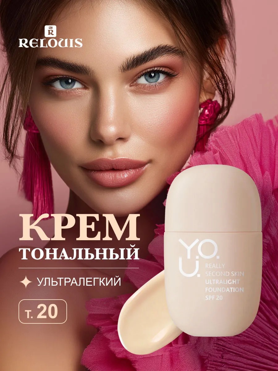 Relouis Тональный крем ультралегкий Y.O.U. Really Second Skin, тон 20 Natural Beige / Натуральный бежевый. Объём: 30гр.
