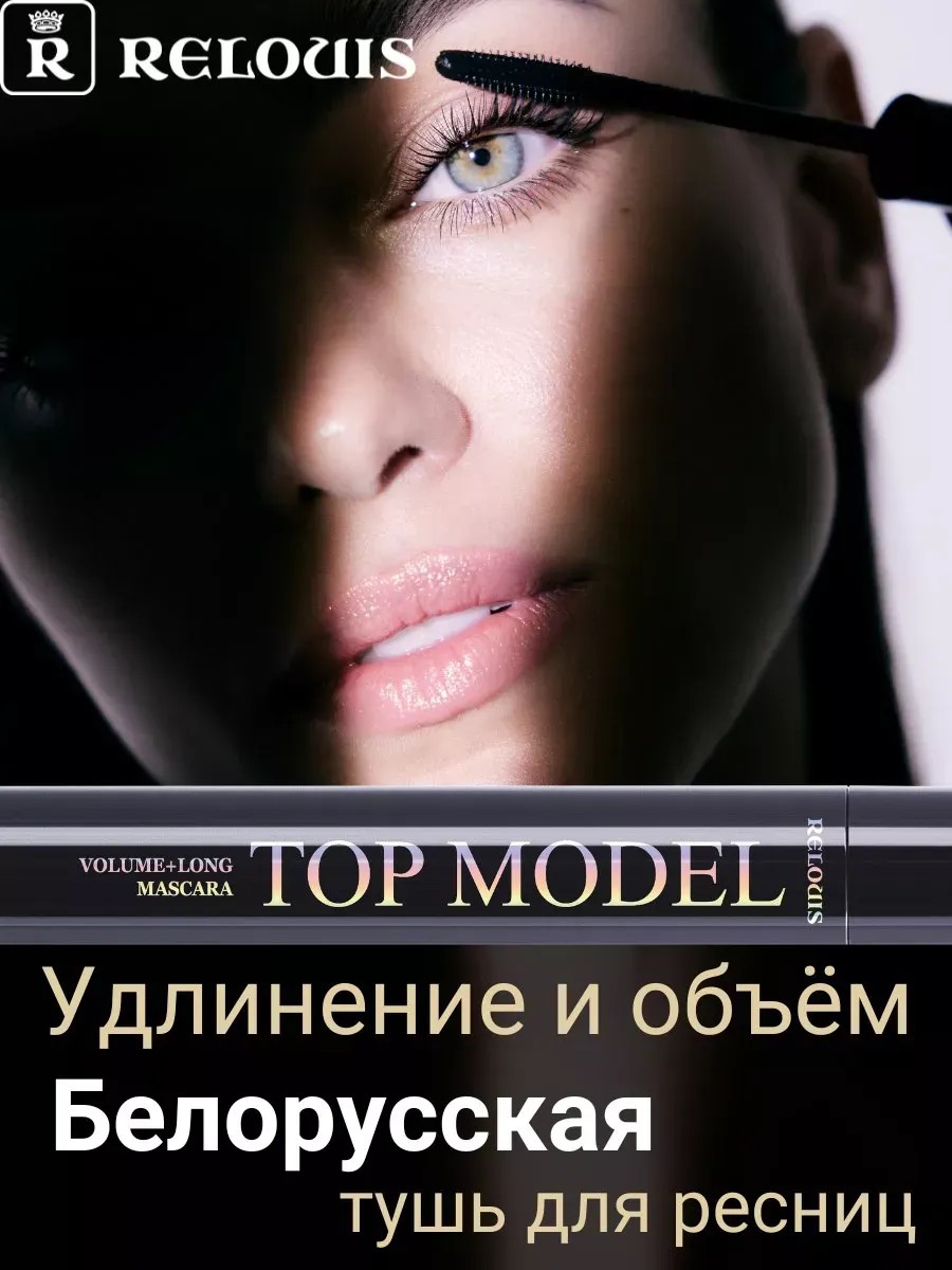 Mascara from the Belarusian brand Relouis Top Model is the perfect solution for creating a stunning look. It provides volume and length from the first application, imparting a rich, black color and definition. The unique formula spreads easily, doesn't clump lashes, and provides a long-lasting result all day long. Discover the secret to flawless eye makeup with Top Model mascara!