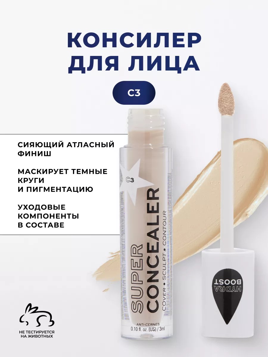 Консилер обладает легкой и нежной текстуру, которая не забивает поры и не подчеркивает морщинки. Он легко наносится и равномерно распределяется по коже, создавая эффект второй кожи. также имеет светоотражающие частицы, которые придают коже сияние и здоровый вид.