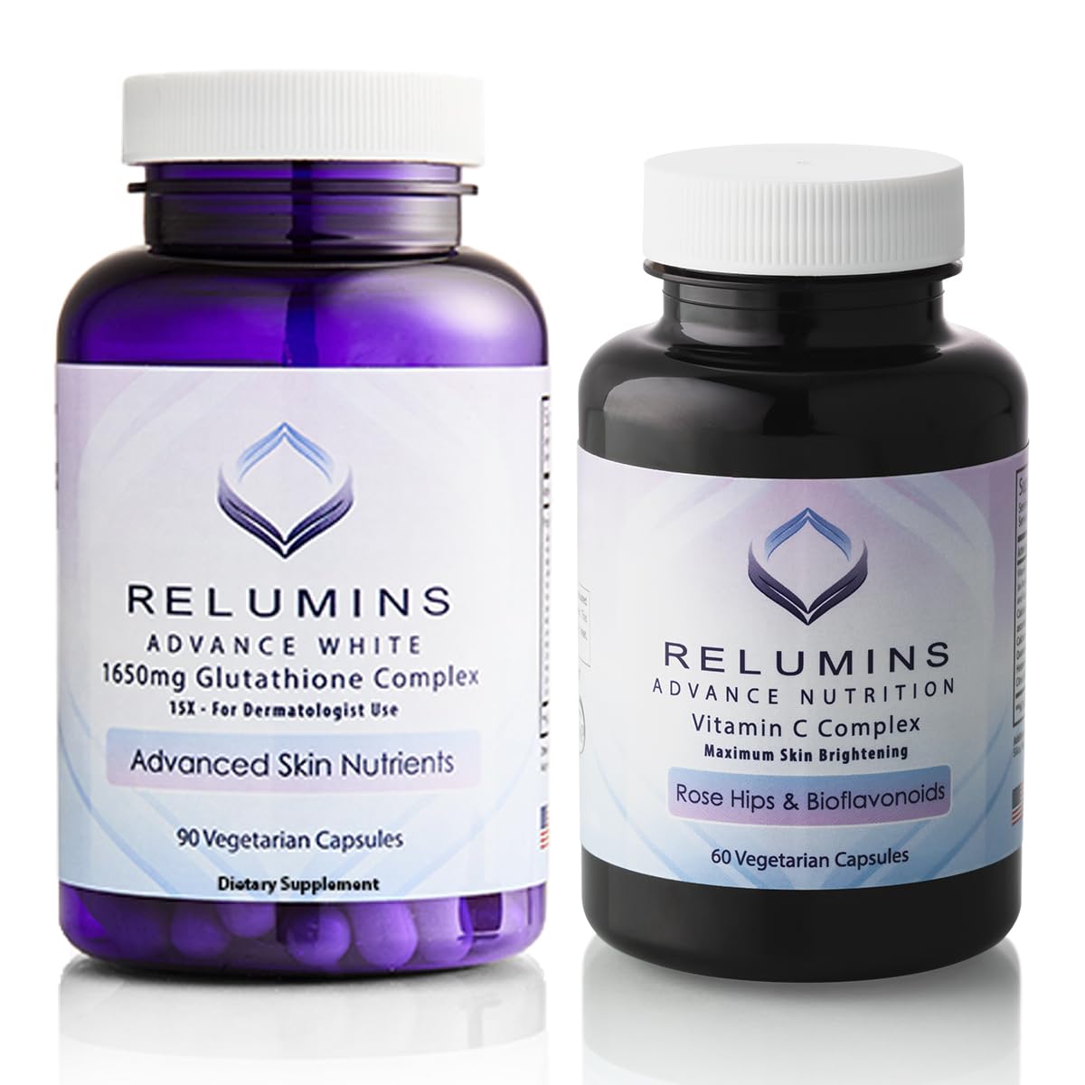Experience a comprehensive approach to skin rejuvenation with the Relumins Ultimate Skin Brightening Bundle. This dual-action system combines a potent 1650mg Reduced Glutathione Complex with our Advanced Vitamin C Supplement to support a radiant, youthful complexion. Formulated with high-quality, vegetarian ingredients, this bundle works synergistically to boost collagen production, enhance skin repair, and provide robust antioxidant protection against environmental stress. Ideal for anyone seeking to improve skin clarity, firmness, and overall vitality.