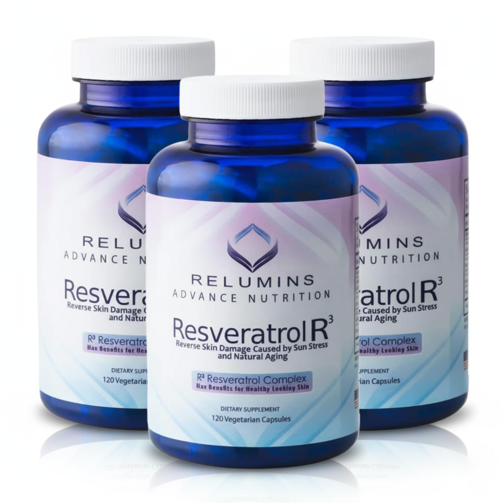 Relumins Resveratrol 600mg Supplement High-Potency Antioxidant with Grape Seed & Red Wine Extract Supports Skin Heart Health & Immune System 120 Vegan Capsules x 3 Bottles