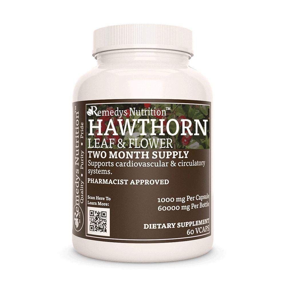 Remedy s Nutrition Hawthorn Leaf & Flower | 1 000 mg 60 Vegan Capsules Herbal Dietary Supplement | Two Month Supply