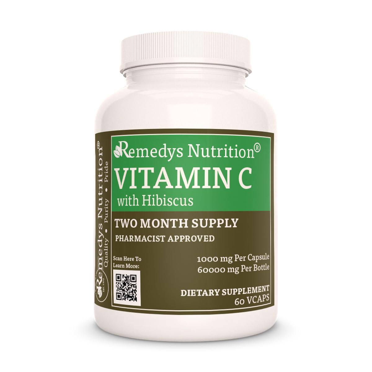 ABOUT US: We are a Family of Nutritionists and Herbalists with a combined experience of over 100 years. OUR PRODUCTS: Hand Made for Every Order Since 1972. Manufactured On-Site in our Family Owned Business Location. 100 NATURAL INGREDIENTS: Never any Gluten, Wheat, Yeast, Lactose, Artificial Flavors, Sweeteners, Additives, or Preservatives Added. Non-GMO. Suitable for Vegetarians and Vegans. Just Wholesome Herbs!. ABOUT THE SUPPLEMENT: Vitamin C is a water-soluble vitamin found in citrus and other fruits and vegetables. Hibiscus is a genus of flowering plants in the mallow family, Malvaceae. Sixty 1000mg Vegan Capsules. SAVINGS: Quantity-based discounts on select Remedy's Nutrition supplements. View eligible promotions above or explore our full collection in the Remedy's Nutrition Store.