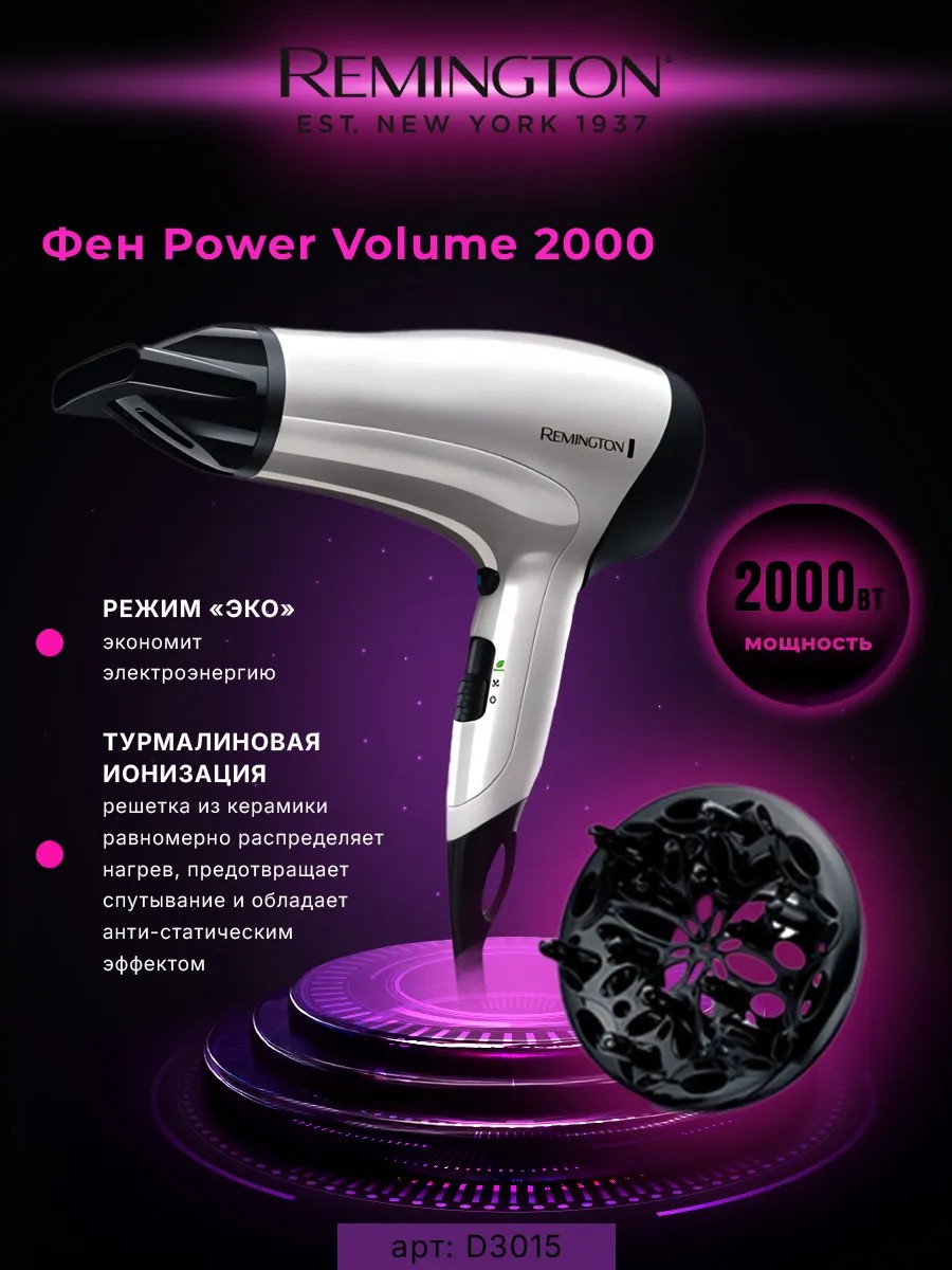 The compact Power Volume D3015 hair dryer with ionization is a reliable and stylish hair care device.