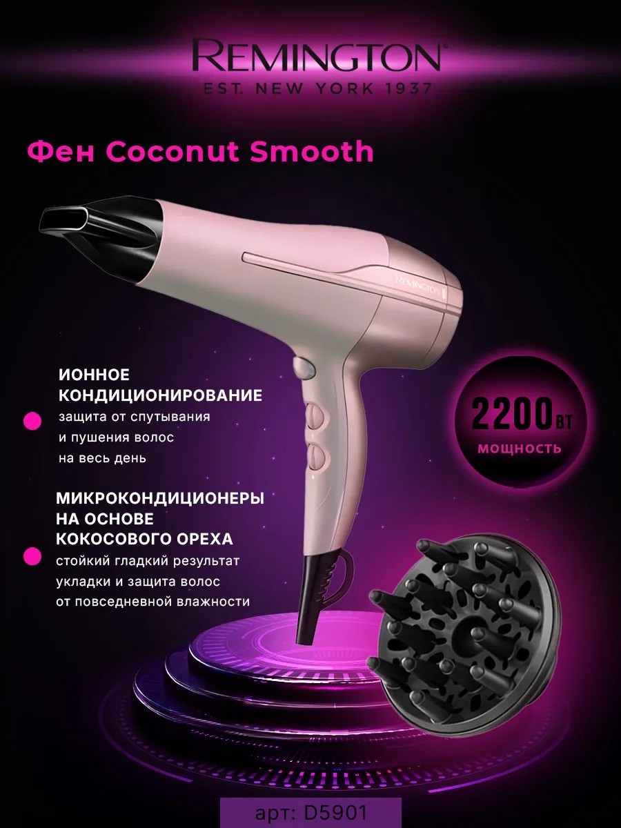 The powerful Remington D5901 ionic hair dryer is ideal for quick drying, stylish styling, and healthy hair.