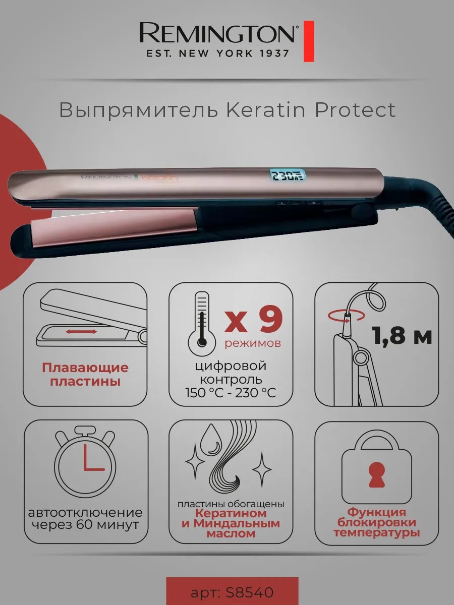 Защитите свои волосы от ежедневных укладок и создавайте идеальные образы каждый день с выпрямителем Remington Keratin Protect Straightener S8540.
