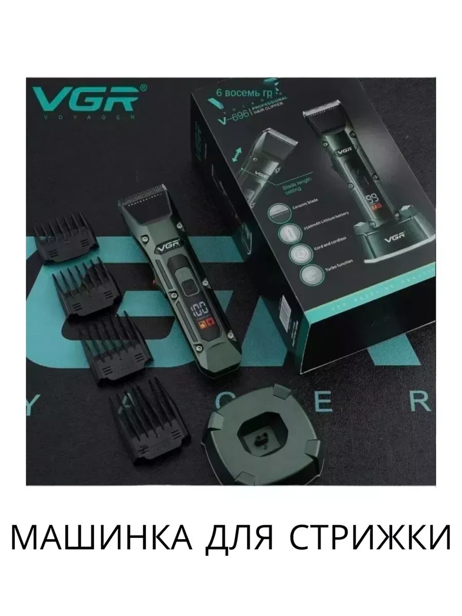 Профессиональная машинка для стрижки волос VGR696. Мощный роторный двигатель с увеличенным крутящим моментом, имеет профессиональные ножи из нержавеющей стали. Отличаются своей твердостью и долговечностью, что позволяет машинке справляться с самыми густыми и жесткими волосами. Профессиональная машинка оснащена инновационным встроенным Li-Ion аккумулятором 2500 mAh. Вы можете выполнять стрижки как автономно, так и от сети. Отлично подходит для парикмахерской или домашнего использования. Led дисплей показывает уровень заряда аккумулятора. 2 скорости мотора. Характеристики: Бренд: VGR; Регулировка скорости моторчика: 2 варианта; LED дисплей: показывает уровень зарядки; Индикаторы: масла и заряда аккумулятора; Насадки: (4шт) ; Аккумулятор: Li-on 2500 mAh; Время зарядки: 3.5 часа; Время работы при полной зарядки 300 минут; Мощность: 8 Вт; Мотор: роторный 6500об/мин; Зарядка: USB провод без блока; Шнур USB без блока питания: 1.4 м; Низкий уровень шума - подходит для стрижки детей; Применение: Стрижка волос, бороды; Материал лезвия: Нержавеющая сталь; Регулировка лезвия: 0.8 - 2.0 мм; Регулируемое лезвие; Ширина ножа: 45мм; Материал корпуса: Металл; Комплектация: Машинка для стрижки; насадки - 4 шт; Шнур USB без блока питания; щетка для чистки; масло смазочное; инструкция по эксплуатации, подарочная коробка. Машинка для стрижки волос прекрасный подарок на день рождения, 23 февраля и другие праздники. Выбирая бытовую технику, вы выбираете легкость в работе, отсутствие необходимости посещать салон для мужчин. VGR лучший аналог известных брендов таких как Philips, Panasonic, Braun, Remington, Xiaomi, Rowenta